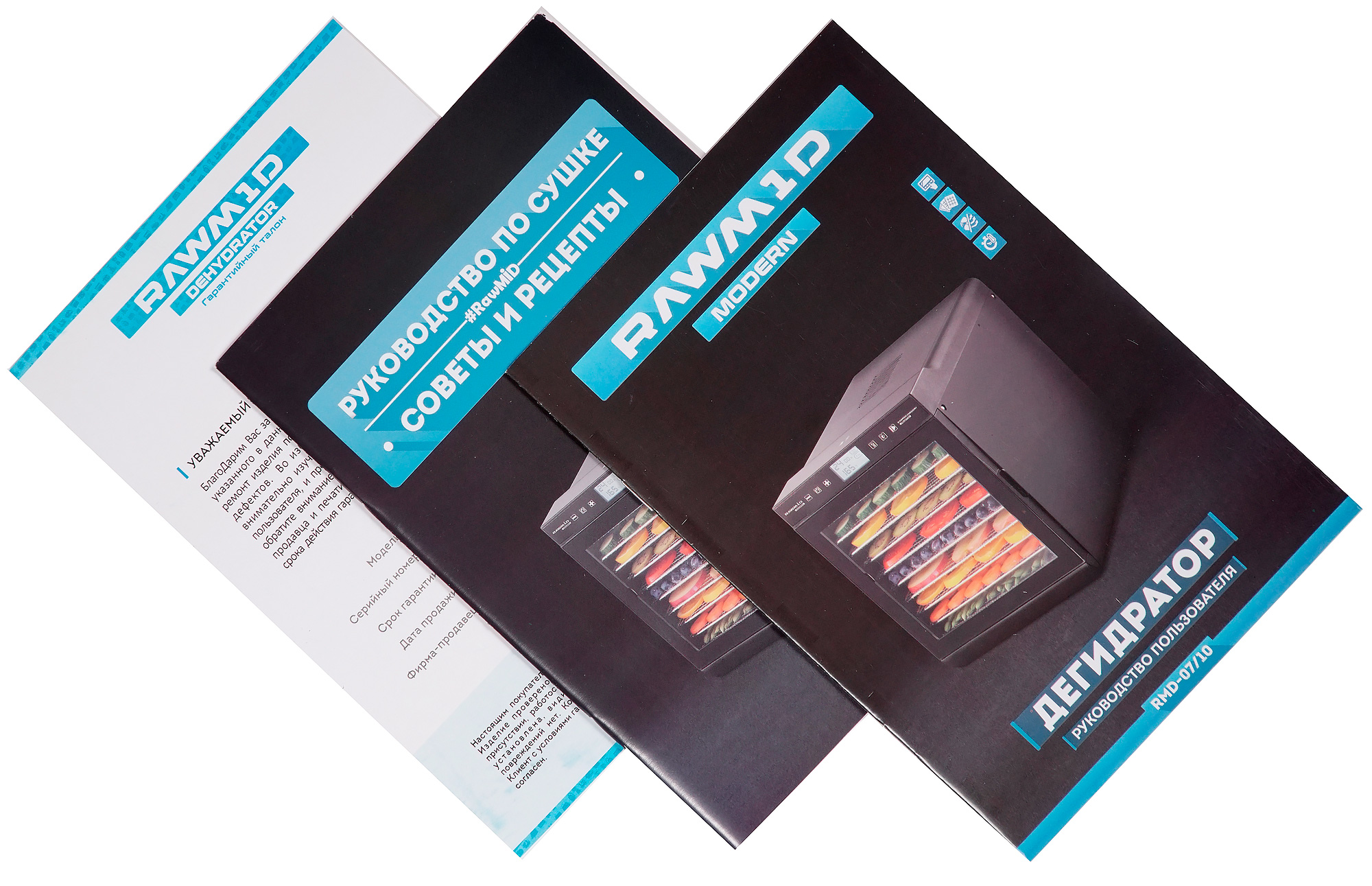 В 14-страничной инструкции рассказывается о правилах эксплуатации и мерах безопасности при взаимодействии с дегидратором. Некоторые разделы сопровождаются цветными фотографиями. Подробно и внятно описан процесс управления и установки как произвольных настроек, так и использование встроенных автоматических программ. Инструкция небольшая, сведения преподносятся в логичном порядке и простым языком, так что на изучение документа достаточно и пяти минут. Разделы, освещающие подготовку и хранение продуктов, очень краткие, дают лишь общее представление о процессах. Таким образом, незаменимым помощником, в особенности для неопытного кулинара, становится вторая брошюра — «Руководство по сушке Rawmid. Советы и рецепты».