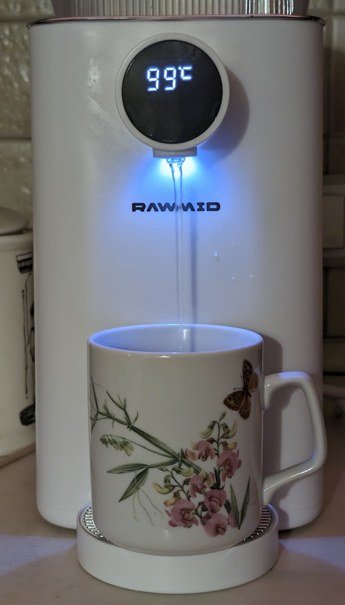 Чайник-диспенсер Rawmid Modern RMK-01 понравился нам современным дизайном, хорошей мощностью, большим объемом резервуара и практичным материалом корпуса. Устройство с успехом может заменить традиционный электрочайник в офисе, квартире или на даче. Возможность за считанные секунды получить нужное количество теплой или горячей воды позволяет сэкономить время и электроэнергию, а встроенный в диспенсер фильтр обеспечит пользователя чистой и мягкой водой. Применение фильтра позволяет также продлить срок службы прибора.