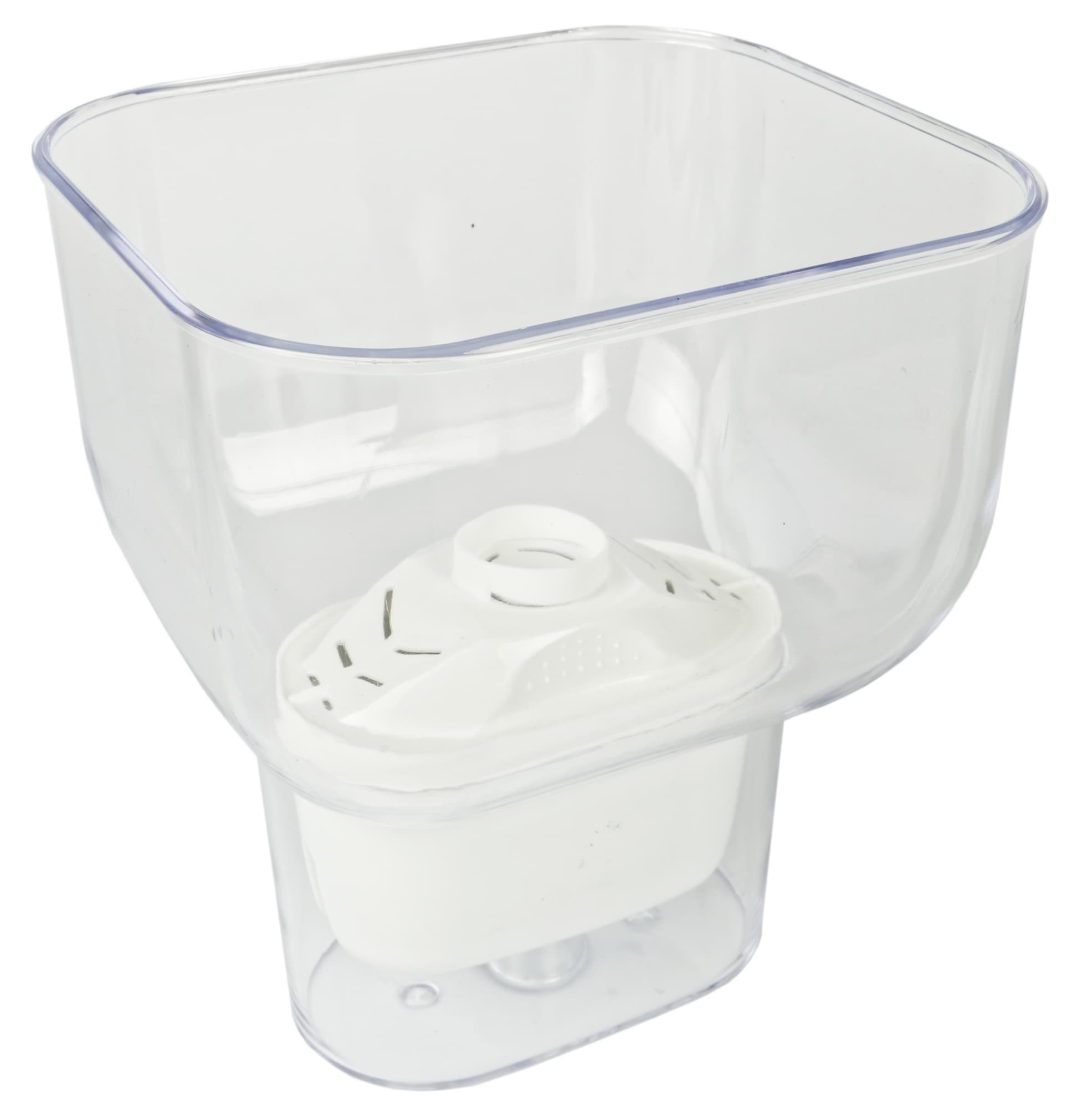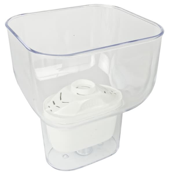 Емкость может работать в качестве кувшинного фильтра: для этого внутрь бака устанавливается прозрачное основание, в которое инсталлируется фильтрующий картридж с активированным углем и ионообменной смолой.