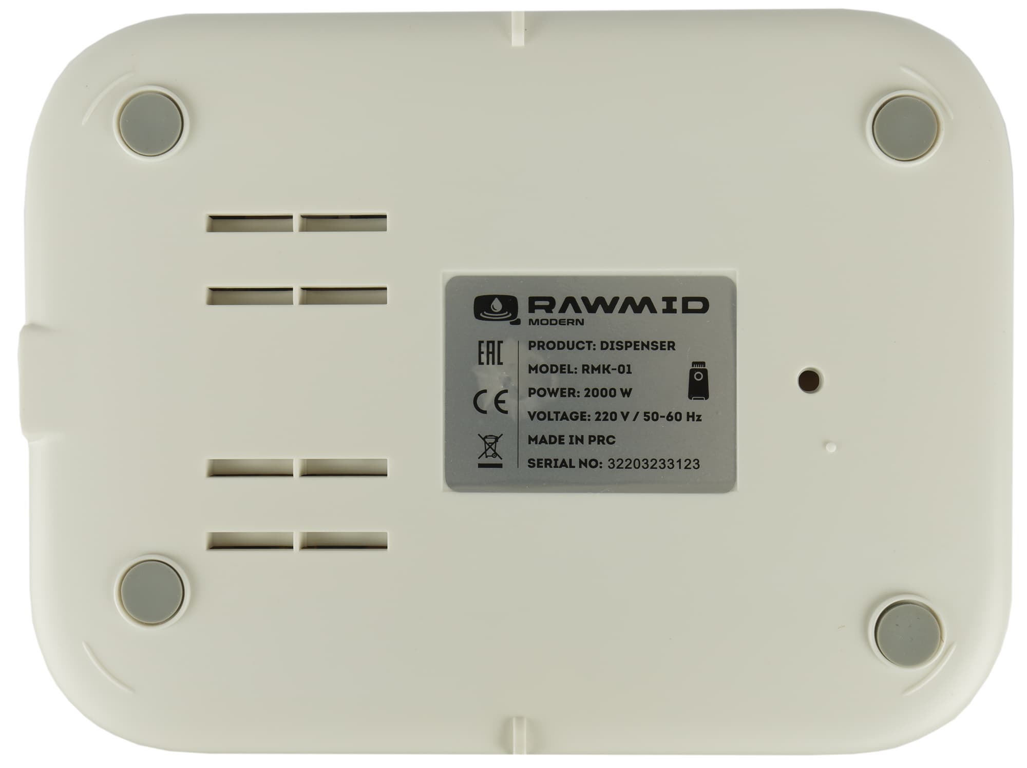 Корпус диспенсера Rawmid Modern RMK-01 представляет собой параллелепипед со скругленными углами, сделанный из матового белого пластика, приятного на ощупь. На покрытии не остается отпечатков пальцев, выглядит оно модно и эффектно.