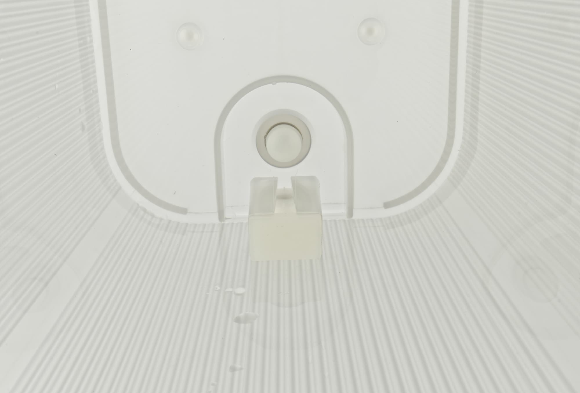 Очень приятной «изюминкой» модели оказалось удобное магнитное крепление поддона для капель: такая конструкция не встречалась нам раньше в устройствах подобного типа. Хорошим дополнением к основной функциональности оказалась и подсветка дозатора, позволяющая использовать устройство даже в полутьме.