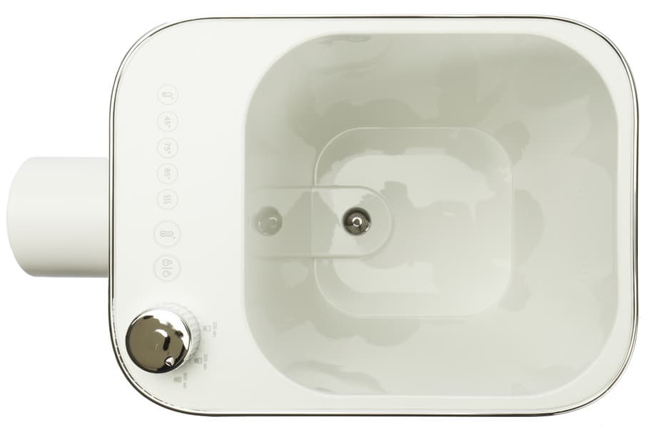 Выбранная температура отображается подсвеченным индикатором на панели управления и дублируется на круглом цифровом дисплее на передней стороне устройства. В режиме ожидания он показывает цифры «25» — так обозначается режим без подогрева.