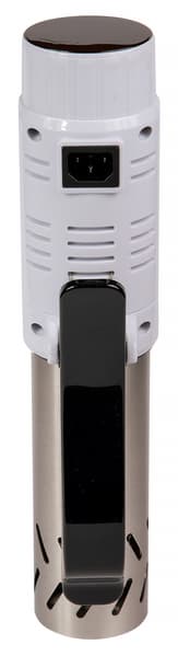 Сзади на корпусе су-вида находится разъем для подключения шнура питания и мощная подпружиненная прищепка, с помощью которой прибор фиксируется на стенке емкости с водой (кастрюли). Место упора у фиксирующего зажима снабжено резиновой насадкой.