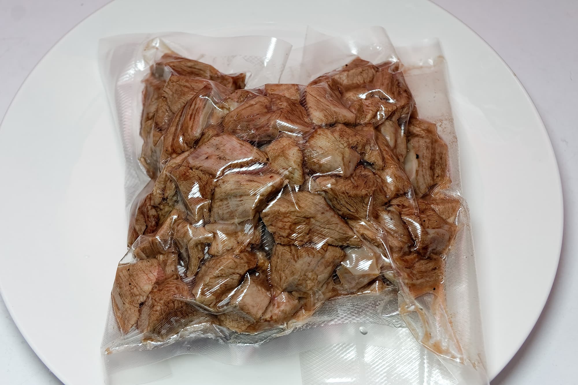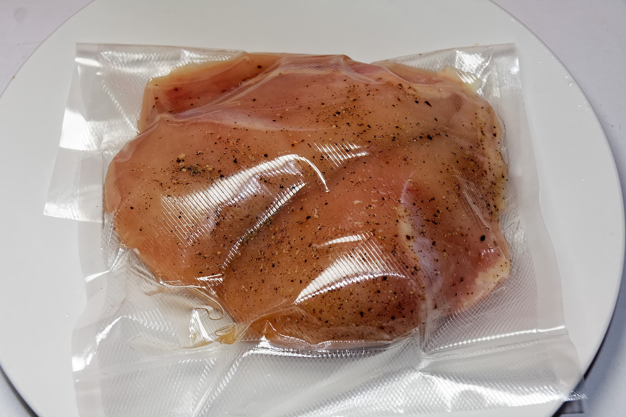 Грудку предварительно посолили, поперчили и вакуумировали.