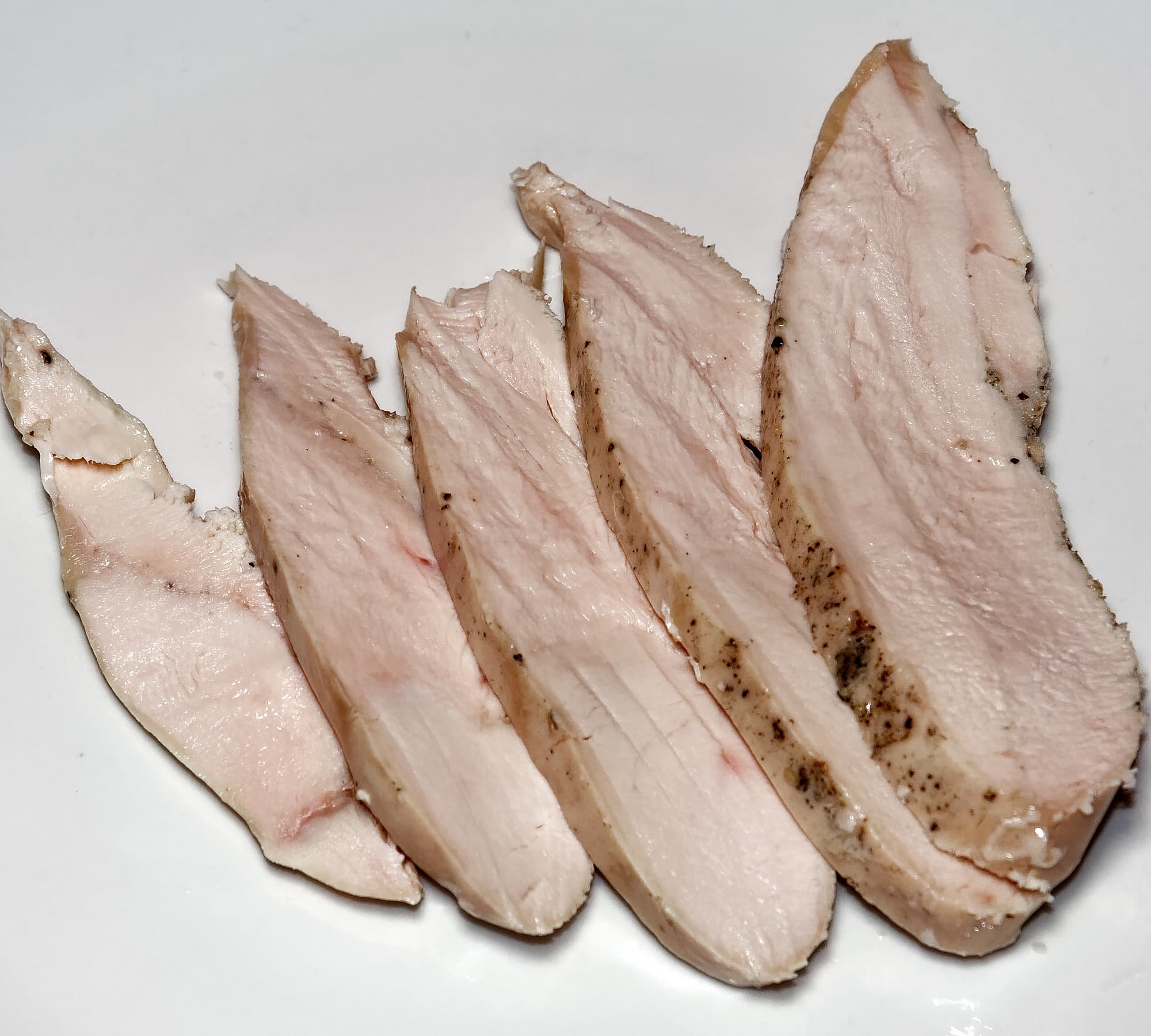 Процесс приготовления не преподнес нам никаких сюрпризов. Куриная грудка оказалась именно такой, какой мы ее и ожидали увидеть: сочной, в меру плотной, с отчетливым вкусом. Такая грудка подойдет и для бутербродов, и для салатов, и для последующего обжаривания.
