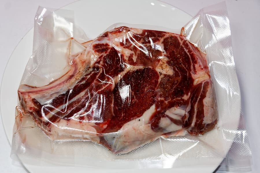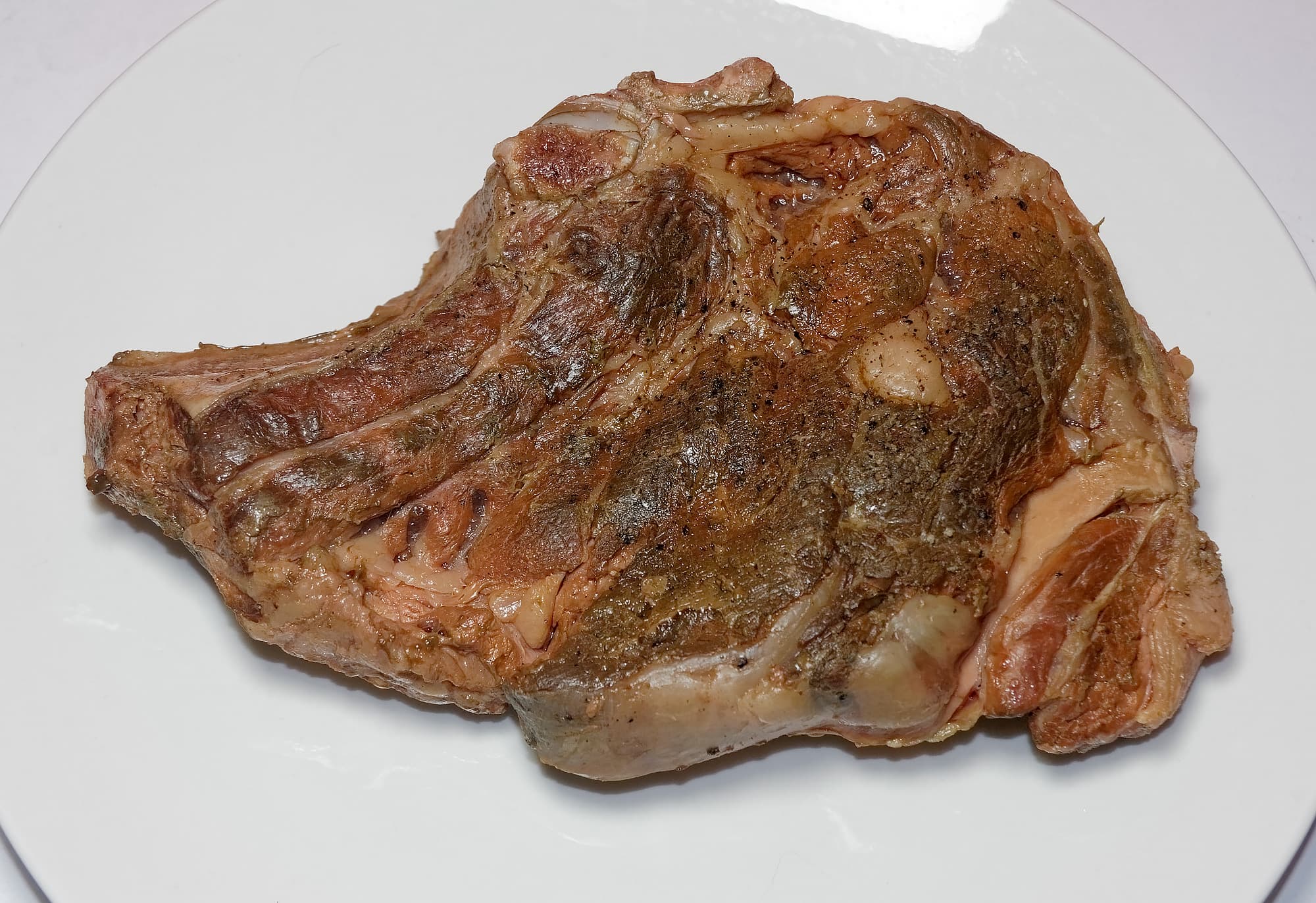 Для этого теста мы взяли кусок говядины (тонкий край на кости), добавили соль и перец, вакуумировали и готовили 12 часов при температуре 59 °C.
