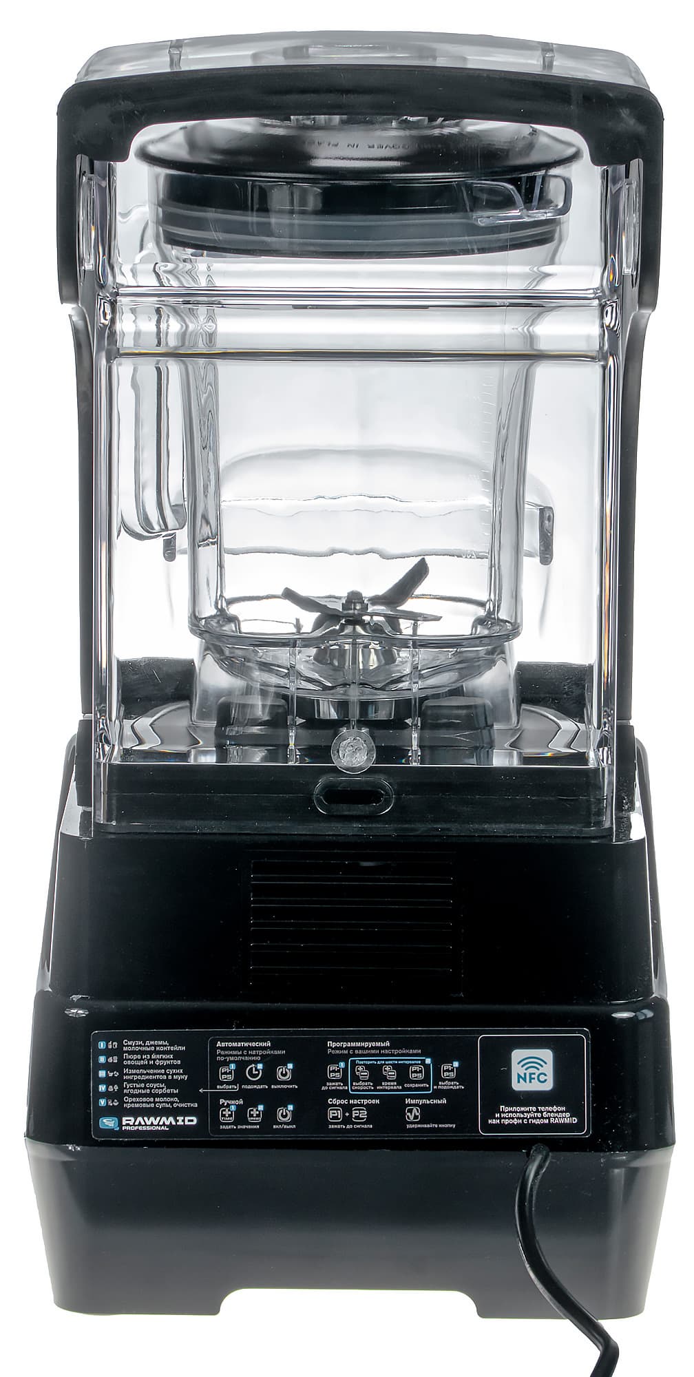 С блендером именно такого типа мы и познакомимся. Помимо шумоизолирующего колпака, Rawmid Professional RPB-02 отличается высокой мощностью, наличием программируемых автоматических программ, объемным шестилопастным ножом и использованием тритана в качестве материала, соприкасающегося с пищевыми продуктами.