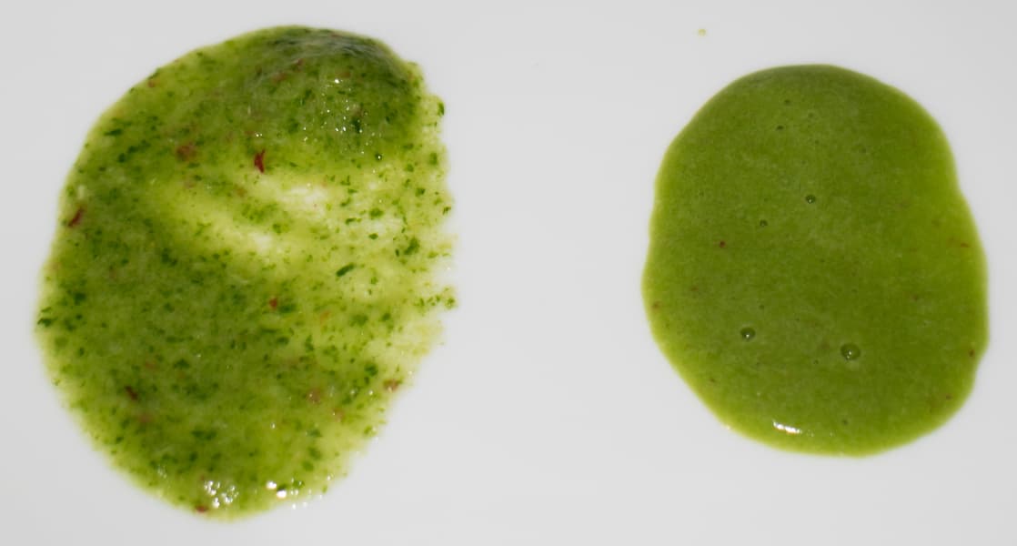 Итог не сильно отличается — косточки были раздроблены изначально, возможно, размеры фракций шкурки стали еще мельче, но и после первых 30 секунд консистенция однородной помидорной массы была превосходной.