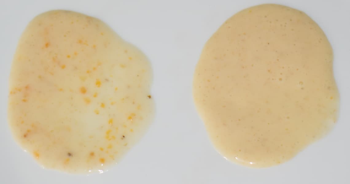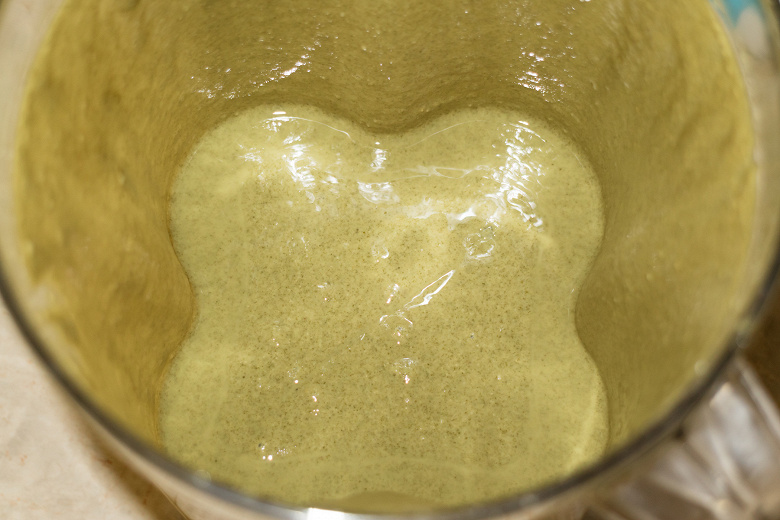 Результат совпал с нашими ожиданиями — все косточки и шкурка измельчены до мельчайших фрагментов, масса однородная, взбитая. Но нам было интересно, возможно ли улучшить результат, поэтому продолжили измельчение в течение еще 30 секунд.