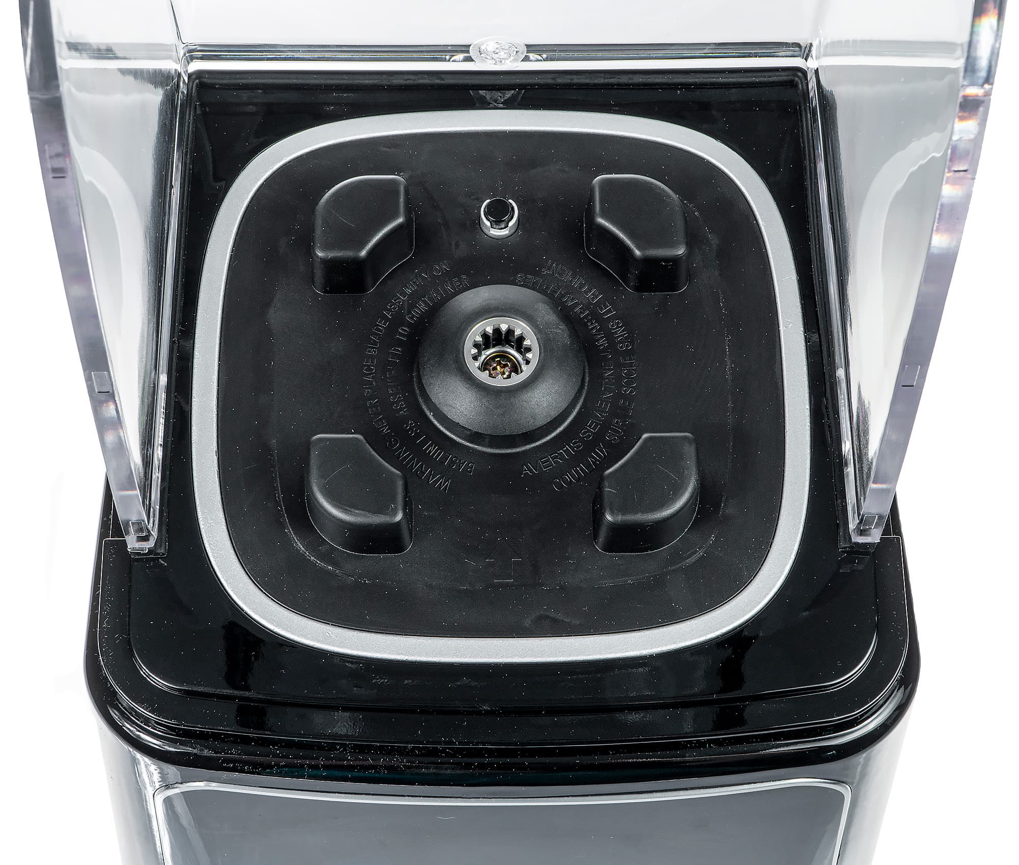 Кувшин устанавливается на прорезиненное основание без каких-либо поворотов или поиска нужного угла, следует лишь совместить углы кувшина с четырьмя выступами на основании. Ближе к стенке колпака расположена кнопка защиты от неправильной сборки, т. е. без установленного кувшина прибор попросту не включится. Материал соединения вала двигателя и ножевого блока — металл/металл.