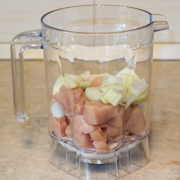 Вернемся к густым и вязким продуктам. С липкими и плотными сухофруктами блендер справился, поэтому помол мягкой куриной грудки не должен бы вызвать у него никаких затруднений. Посмотрим.