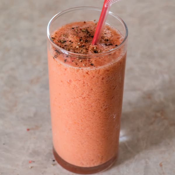 Смузи получилось однородное, но в нем можно разглядеть отдельные кусочки кожуры яблока и фрагменты шпината. 18 секунд нам показалось недостаточно, поэтому мы еще раз изучили инструкцию и запустили Р4 — густые соусы, сорбет (в кувшине как раз замороженные продукты). Прибор поработал еще 25 секунд. Консистенция стала лучше, но этот прибор явно способен на большее. В ручном режиме запустили взбивание еще на 30 секунд на максимальной скорости.