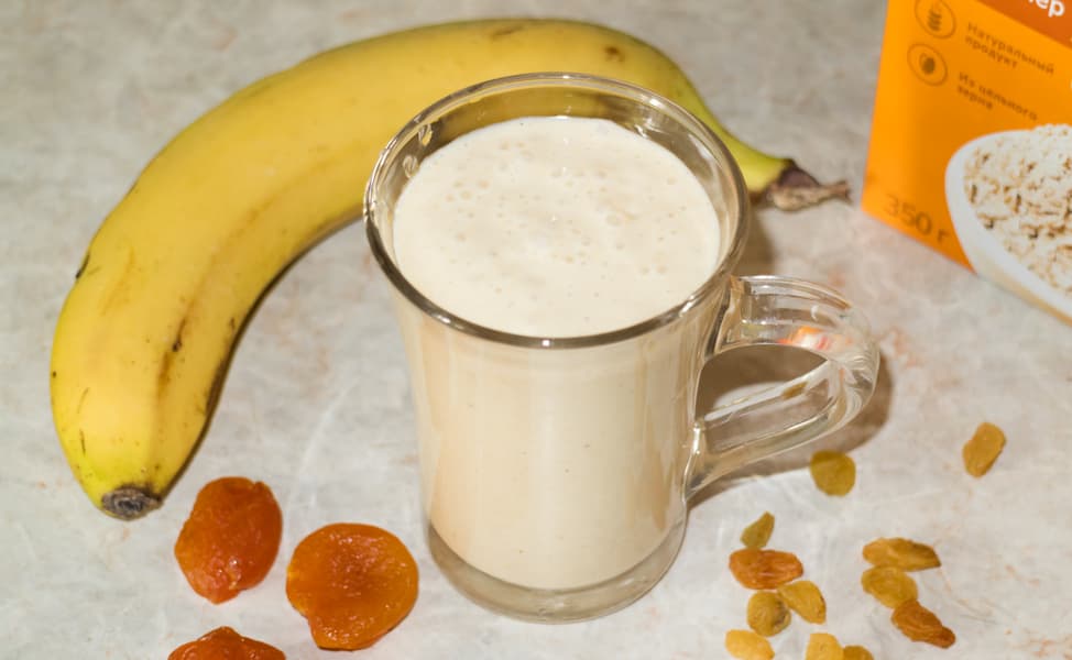 Смузи из йогурта, овсянки, банана и сухофруктов