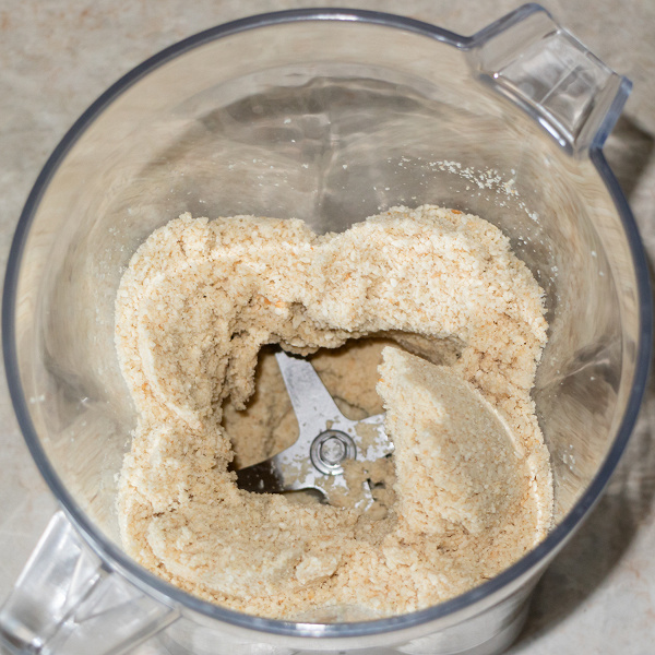 После одного прогона программы Р3 семечки действительно превратились в почти муку. Однако однородной ее не назвать. Если бы нам нужно было сделать муку, то следовало бы счистить разлетевшиеся по стенкам кусочки семечек в центр и повторно запустить программу, но мы решили приготовить тыквенную пасту, поскольку в наличии имелось тыквенное масло.