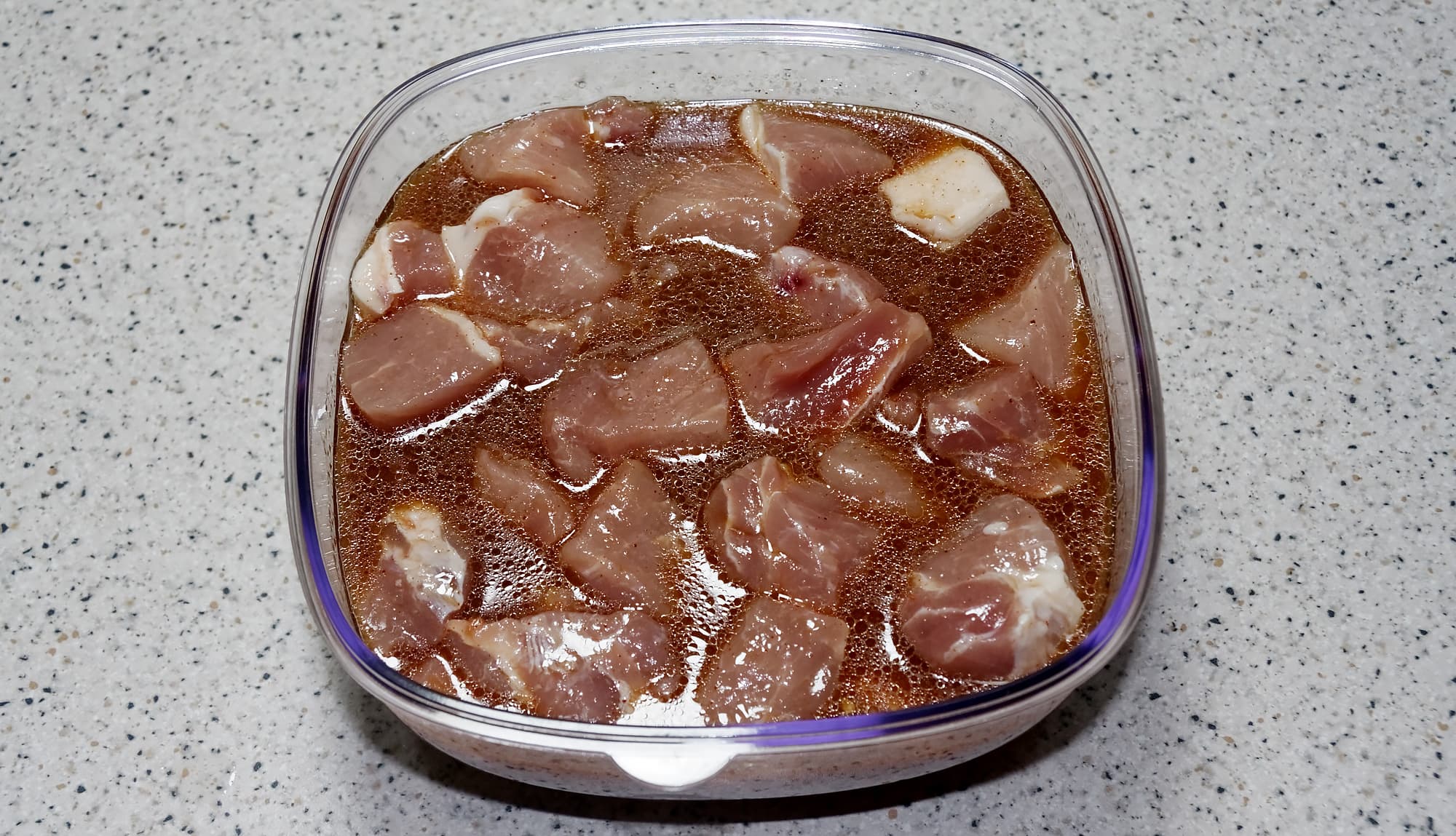 Маринад мы взяли следующий: сок пары протертых томатов и такое же количество соевого соуса, крахмал, паприка, мёд, соль и немного кунжутного масла.