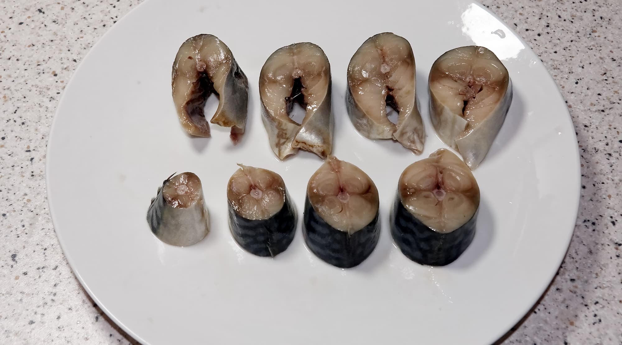 Наша скумбрия солилась три часа при комнатной температуре. По истечении этого времени рыба оказалась хорошо просолена и готова к подаче на стол.