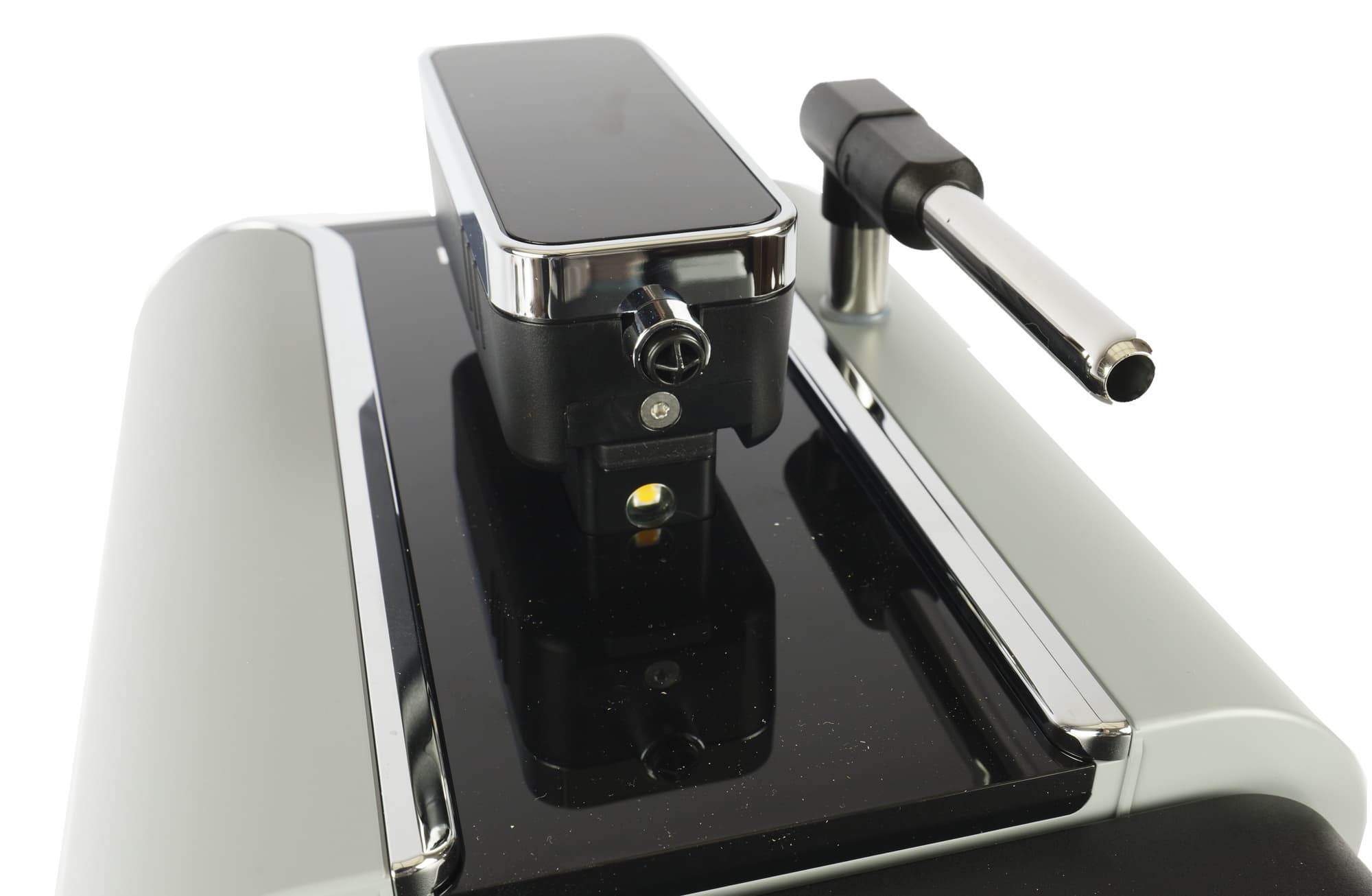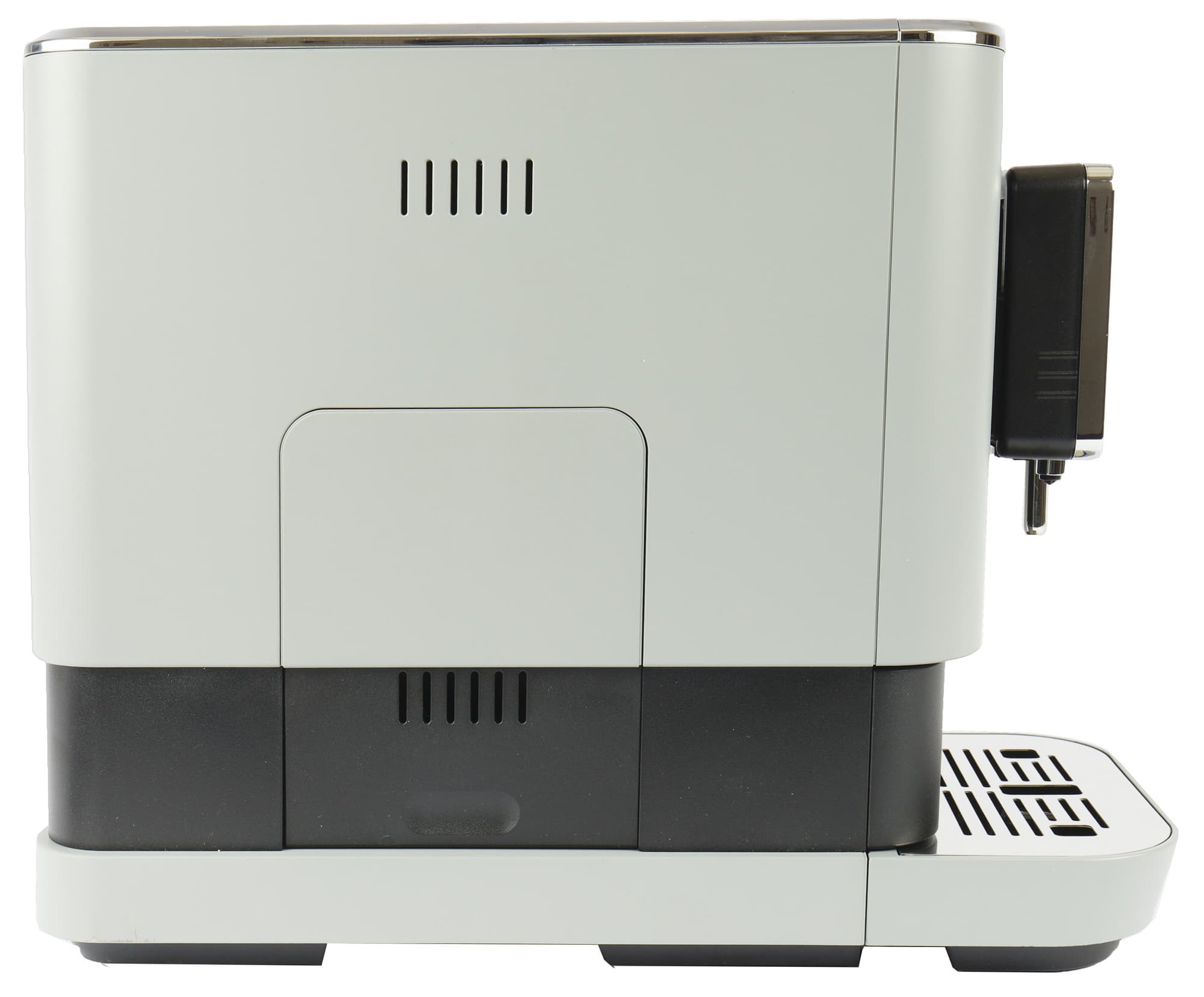 Кофемолка у нашей машины спрятана внутри, снаружи видно не очень много, однако мы-то уже знаем, что там находятся стальные конические жернова с диаметром 40 мм (напомним, очень похожую кофемашину мы уже встречали под другим брендом).