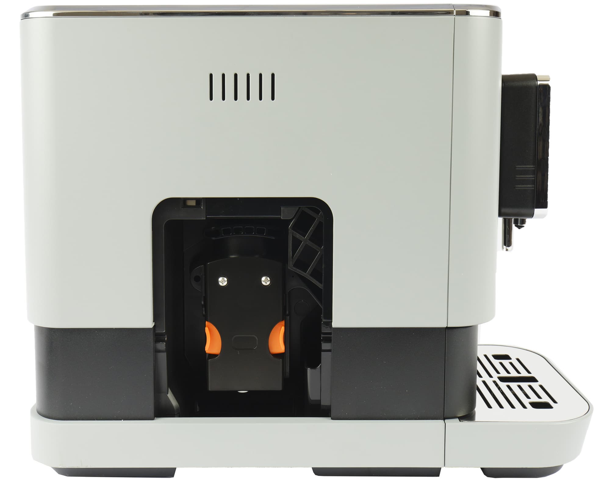 Слева — лючок, под которым прячется заварочный блок. Наверху — вентиляционные отверстия.