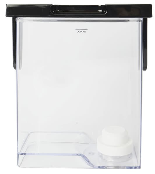 Контейнер для воды объемом 1,1 литра расположен сзади, достается — сверху. Контейнер легко (одной рукой) снимается и устанавливается на свое место. Крышка контейнера откидная, вода заливается сверху. Клапан подачи воды в кофемашину снабжен несложным фильтром.
