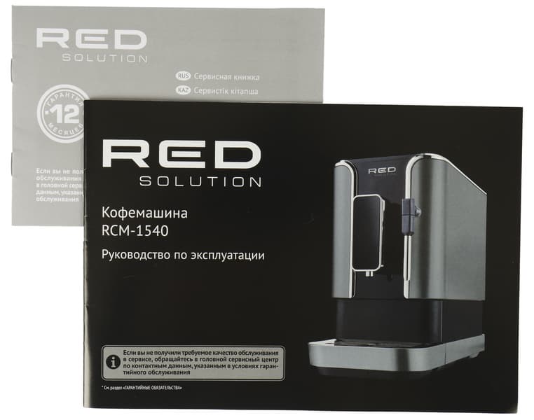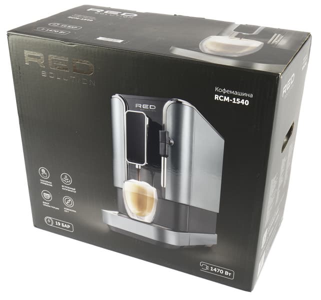 Кофемашина поставляется в двойной коробке. Внешняя — из технического коричневого картона. Внутренняя — «парадная», оформленная в фирменном стиле Red. Основной цвет — черный, печать полноцветная (с глянцевыми элементами), фотографии высокого качества.