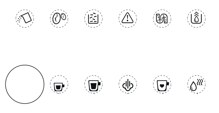 Как мы уже упоминали выше, управление кофемашиной осуществляется с помощью сенсорных кнопок со светодиодной подсветкой и светодиодных же индикаторов, которые загораются в случае возникновения каких-то проблем.