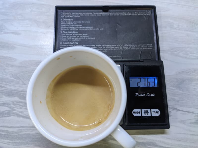 Крепость напитка оказалась вполне предсказуема: 9 г зерен и 60 мл воды — это довольно водянистый напиток.