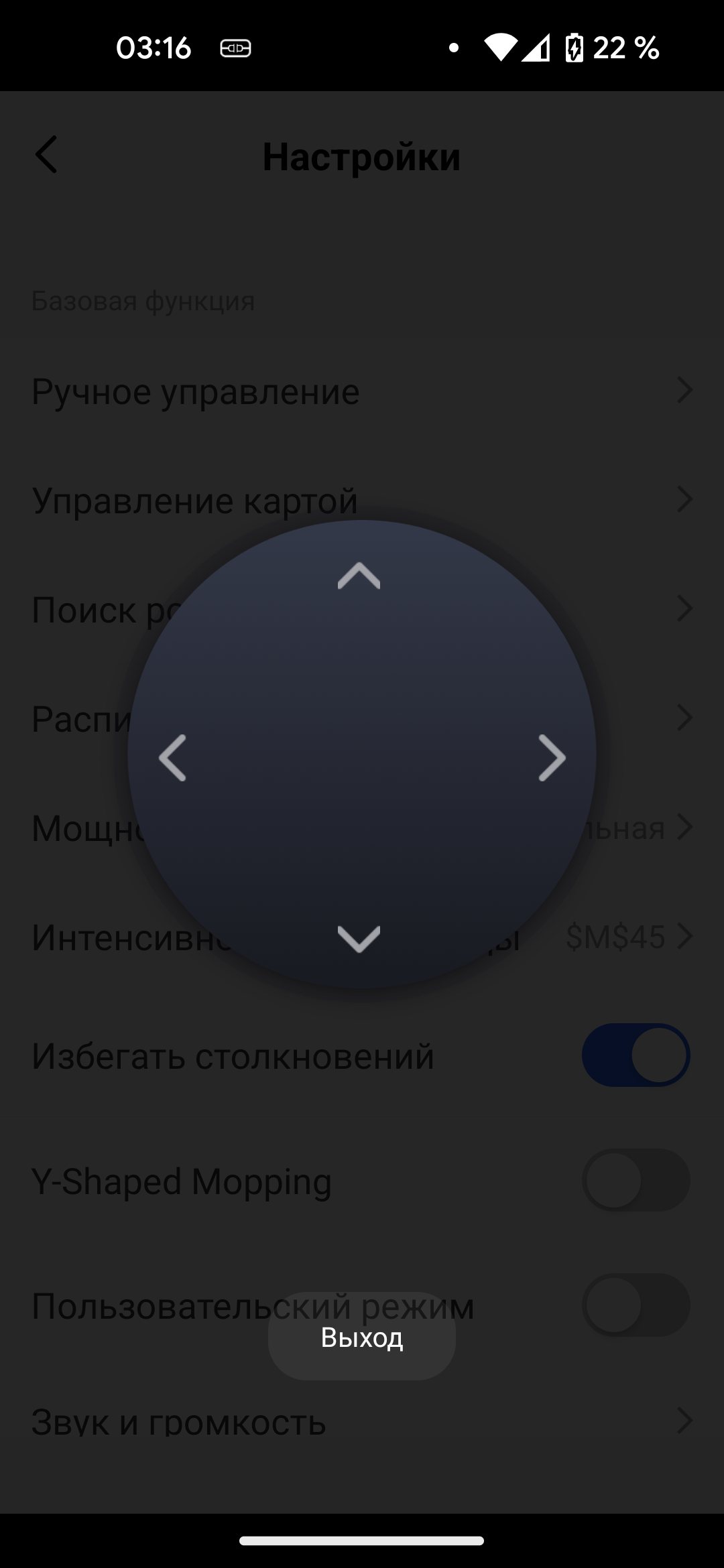 Воспользовавшись пунктом «Ручное управление», пользователь может превратить экран смартфона в пульт дистанционного управления, чтобы направить устройство в нужный участок помещения.
