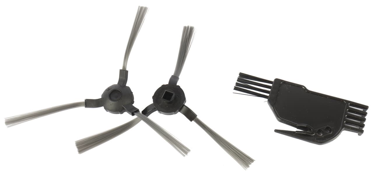 Комплектация устройства позволяет сразу же приступить к уборке (следует, правда, заранее приобрести пару батареек формата ААА для пульта управления — они к устройству не прилагаются). Из расходных материалов в коробке содержится только запасной фильтр тонкой очистки. Боковые щетки и салфетки для влажной уборки пользователю придется впоследствии покупать самостоятельно.