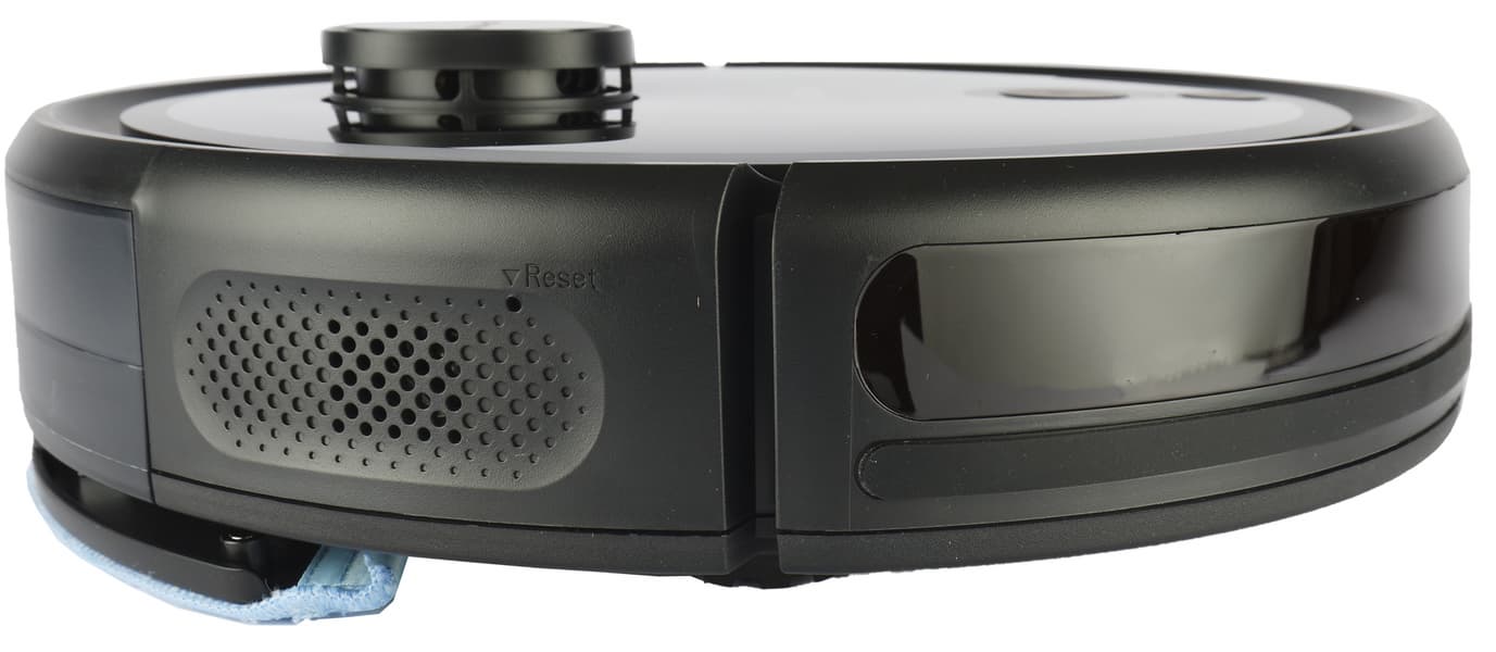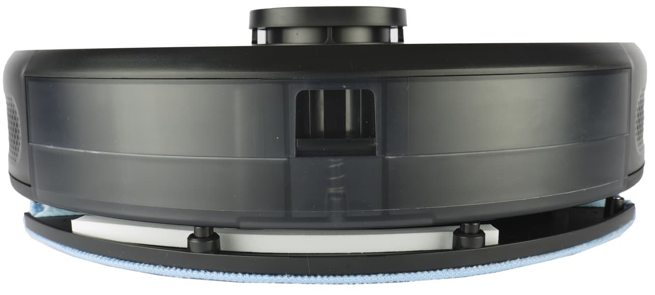 Модуль влажной уборки — резервуар из темного пластика с заливной горловиной, закрытой светло-серой резиновой пробкой. Внутри блока находится миниатюрный насос, управляющий подачей воды на салфетку. Объем бака для воды — 0,3 литра.