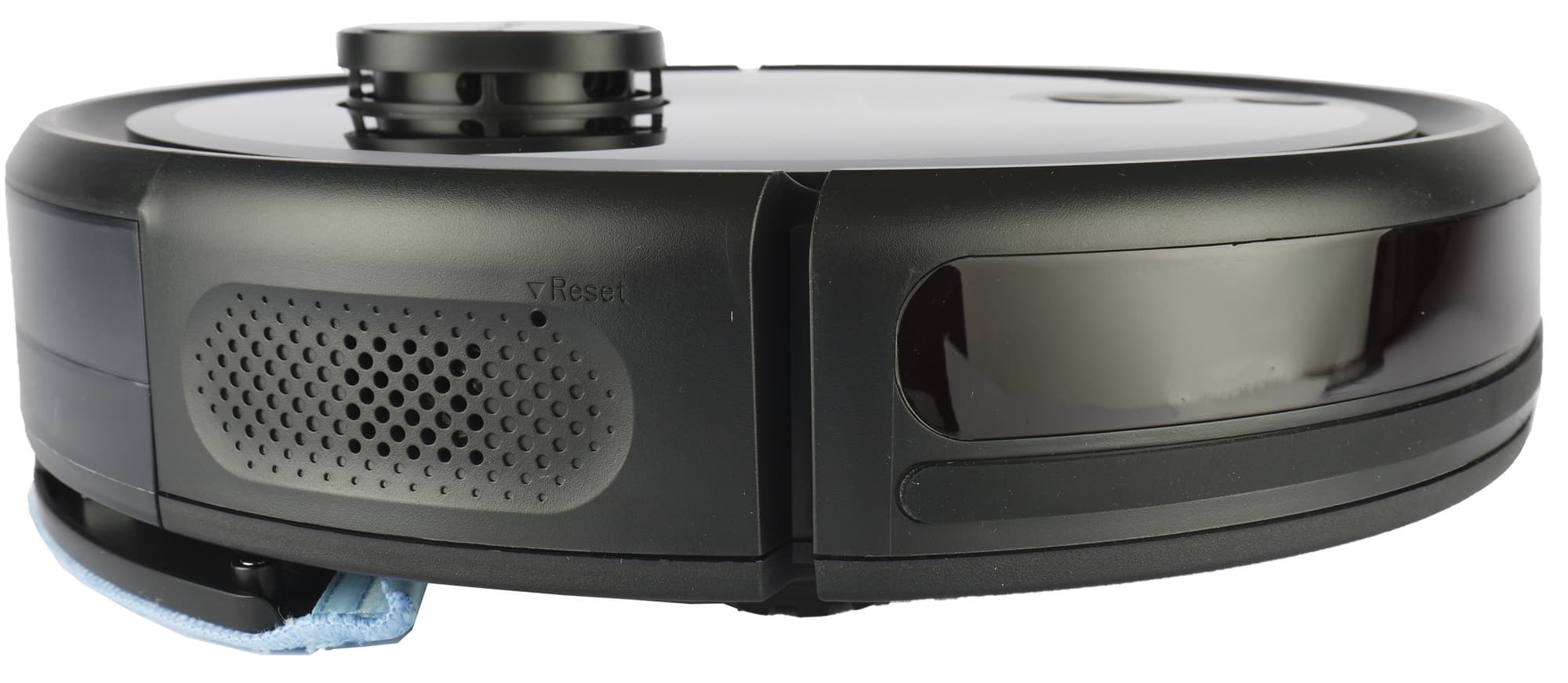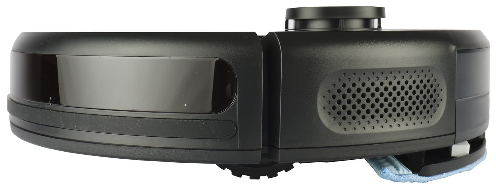 Башенка, в которой скрывается лидар, возвышается над верхней панелью. Внутри нее вращается пара оптических датчиков, позволяющих прибору быстро и точно строить карту помещения.