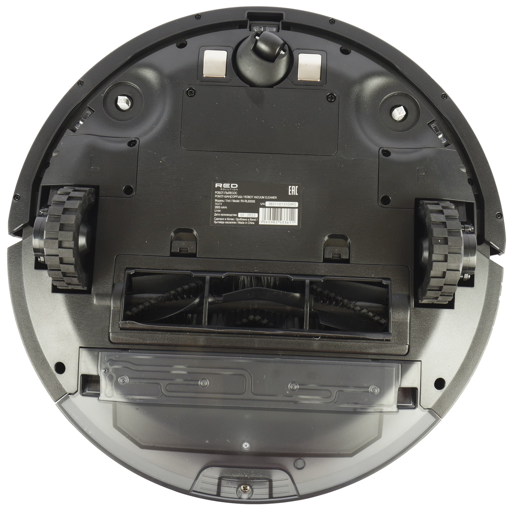 Ходовая часть RV-RL6000S традиционная, проверенная временем: в движение устройство приводится двумя ведущими колесами, а в дополнение к ним в передней части есть третье, опорное. Шаг подвески ведущих — от 7 до 32 миллиметров. Выраженные протекторы обеспечивают хорошее сцепление со всеми видами напольных покрытий.