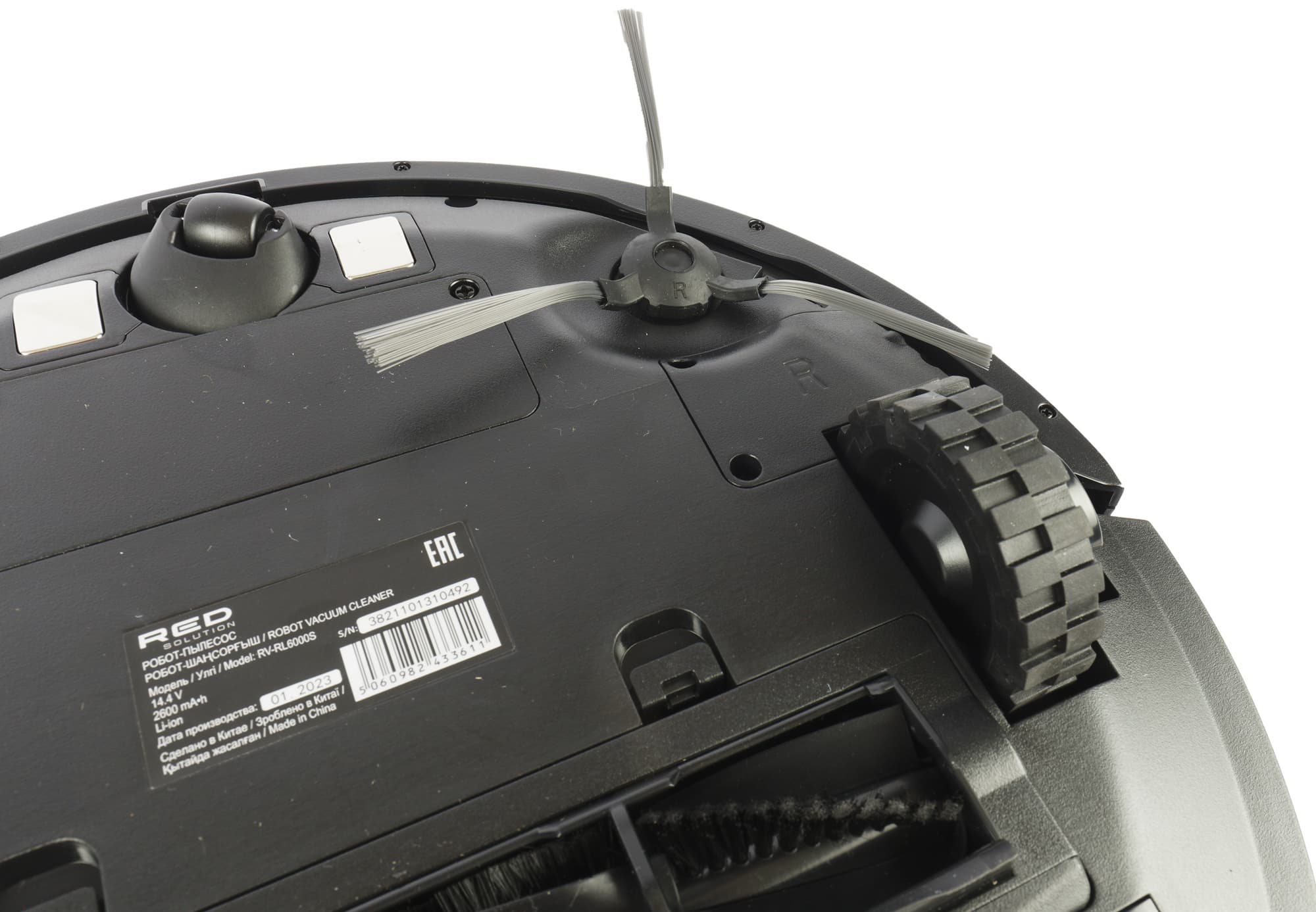 Еще раз пробежимся по тому, как правильно знакомиться с новым роботом. Сначала его надо полностью распаковать, удалив все упаковочные материалы и защитные прокладки с бампера. Второй шаг — боковые щетки: их мы ставим, сообразуясь с маркировкой на осях и корпусе.