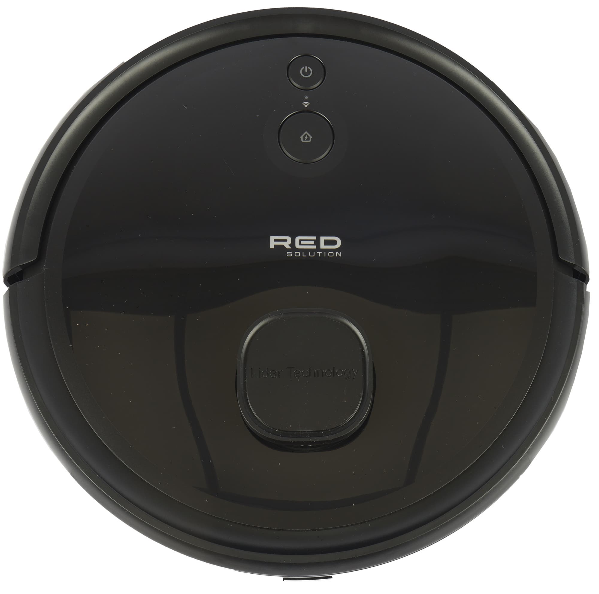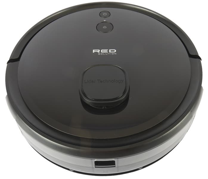 Как и у большинства роботов-пылесосов, корпус у Red Solution RV-RL6000S Wi-Fi круглый. Сделан он из матового черного пластика, а верхняя панель и верхушка башенки лазерного датчика — глянцевые.