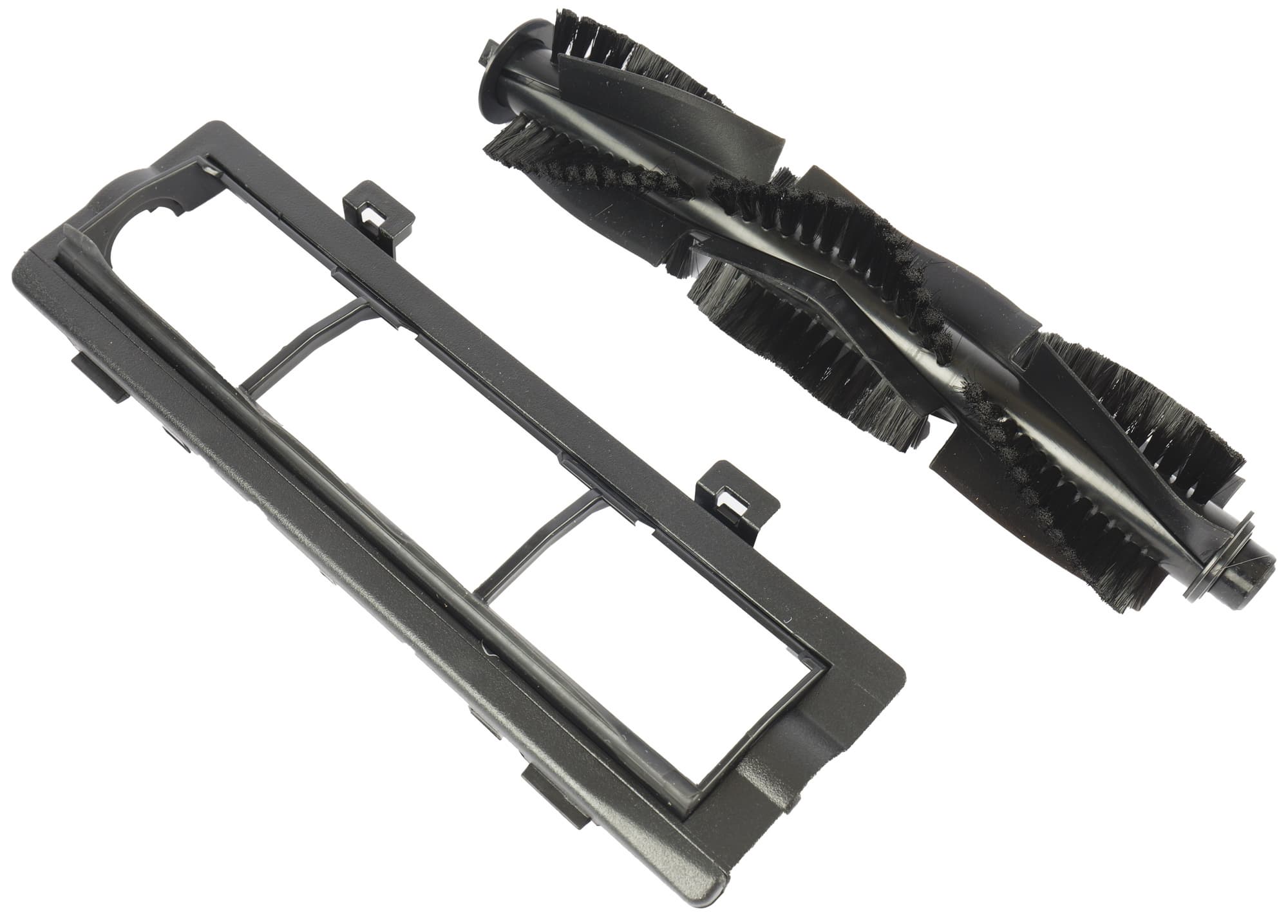 Боковые щетки удерживаются на своих местах с помощью защелок. Левый ротор чуть отличается от правого геометрией. Чтобы не перепутать, на них нанесены пометки «L» и «R» соответственно.