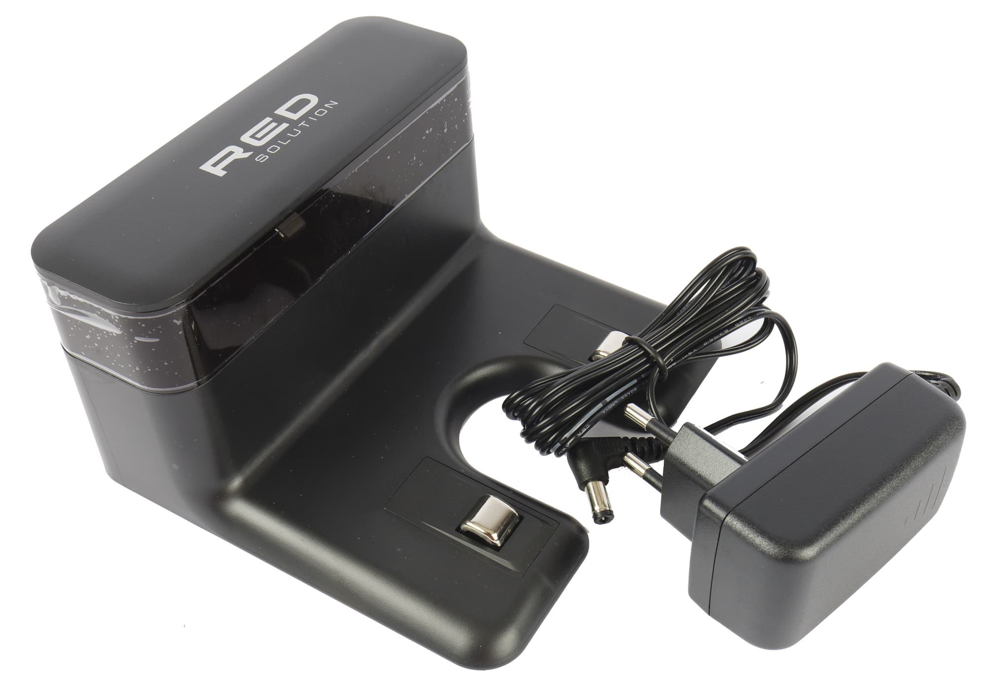 Верхняя часть базы сделана из ИК-прозрачного пластика. Под ним располагаются датчики, облегчающие пылесосу поиск зарядной станции. Зарядка устройства производится с помощью двух подпружиненных металлических контактов на выносной консоли. Адаптер подключается к устройству сзади и обеспечивает его постоянным током.