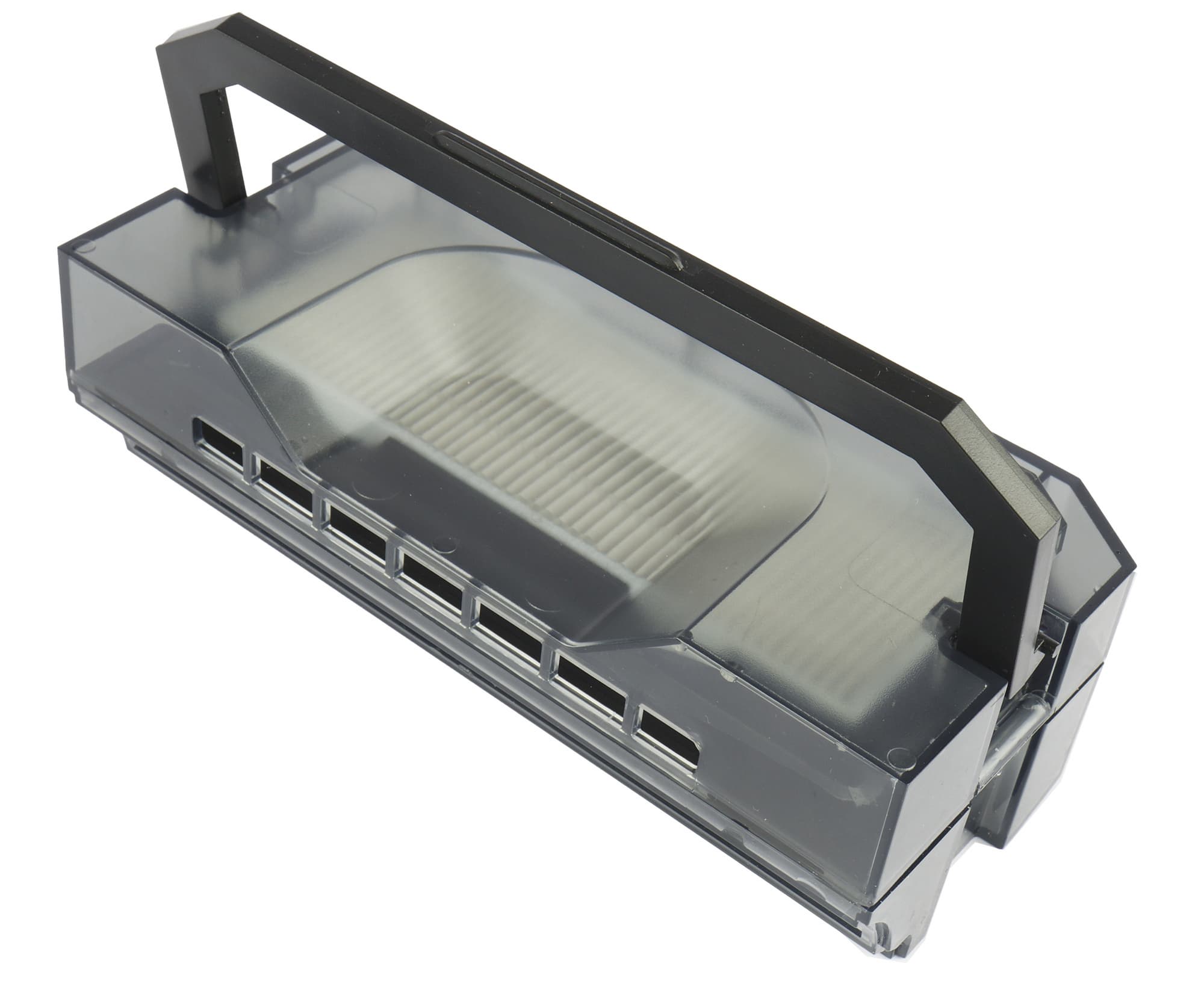 За очистку от мелкой пыли отвечает стандартный прямоугольный HEPA-элемент, защищенный мелкой капроновой сеткой.