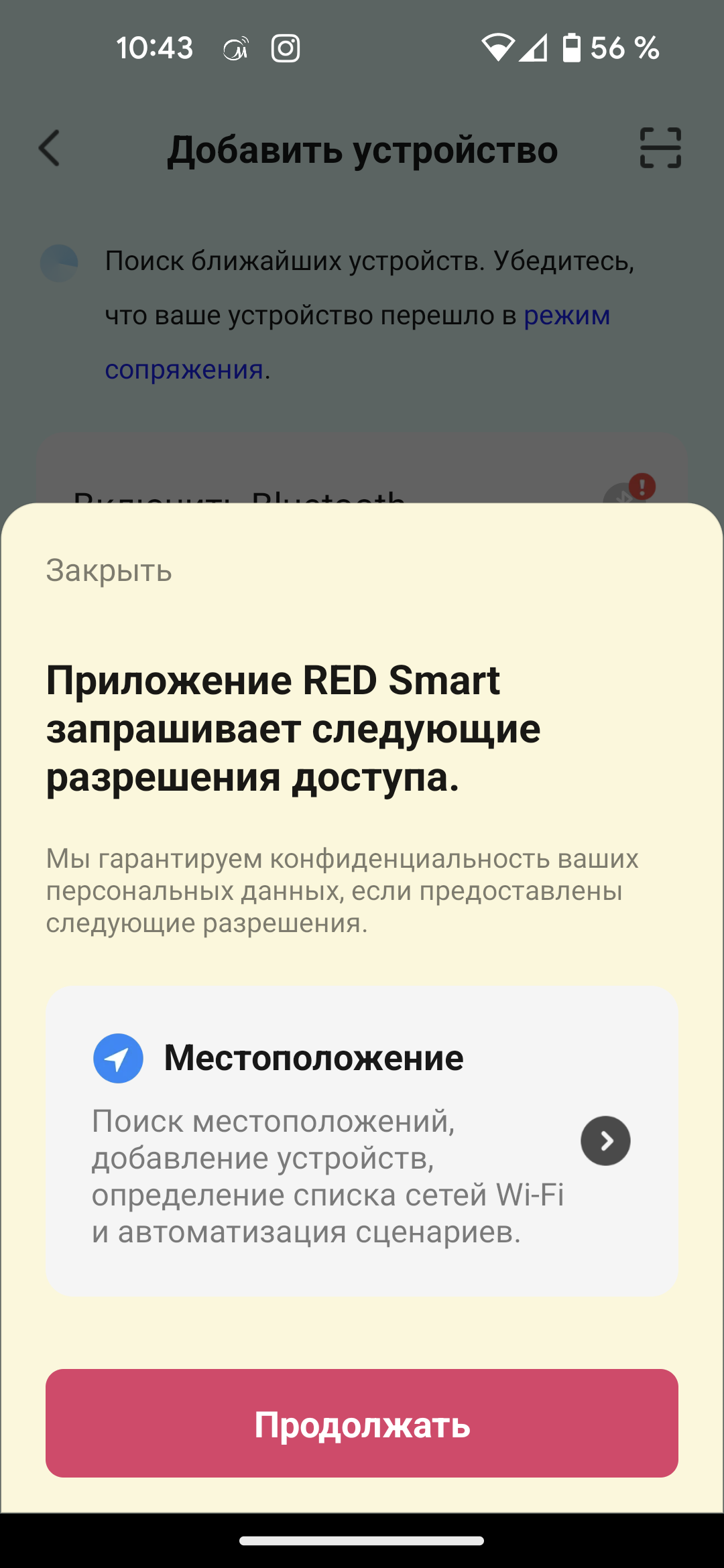 Для корректного обнаружения пылесоса следует также предоставить доступ к данным о местоположении устройства.