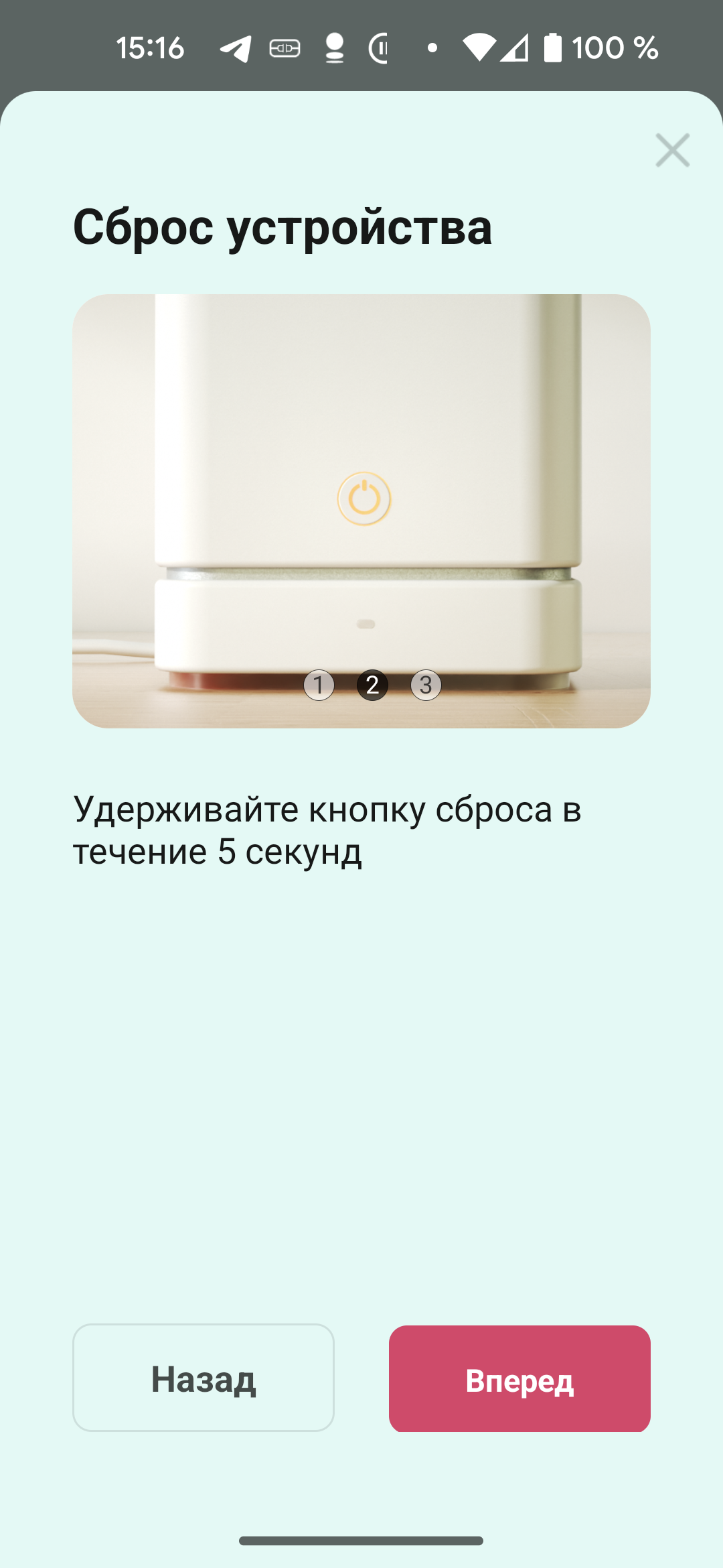 Светодиод между кнопками сигнализирует об активности беспроводного интерфейса.