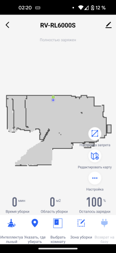 Кнопки ниже позволяют запустить уборку в автоматическом режиме, убрать указанную комнату или навести порядок в заданной точке. Полностью возможности управления пылесосом раскрываются после завершения первой автоматической уборки. Мы рассмотрим их более подробно в разделе «Эксплуатация».