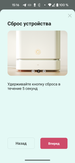 Отверстия для выхода воздуха находятся в задней части устройства, слева и справа. На правом боку есть кнопка сброса к заводским установкам.