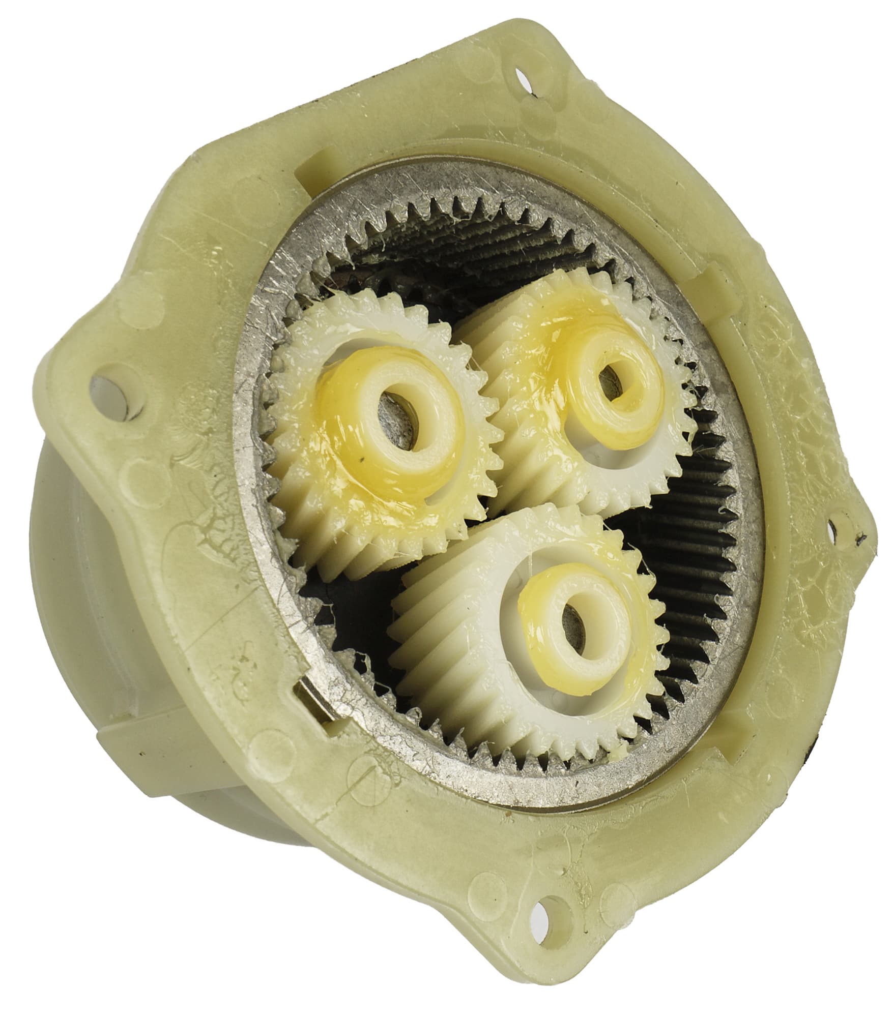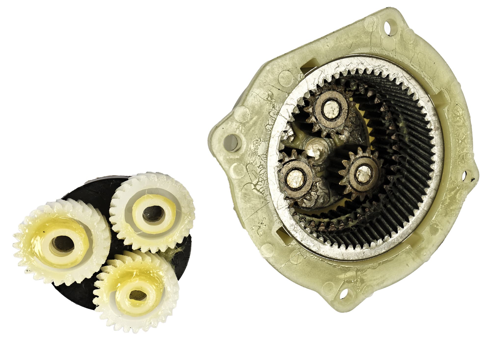 Верхние три сателлитные шестеренки выполнены из пластика: