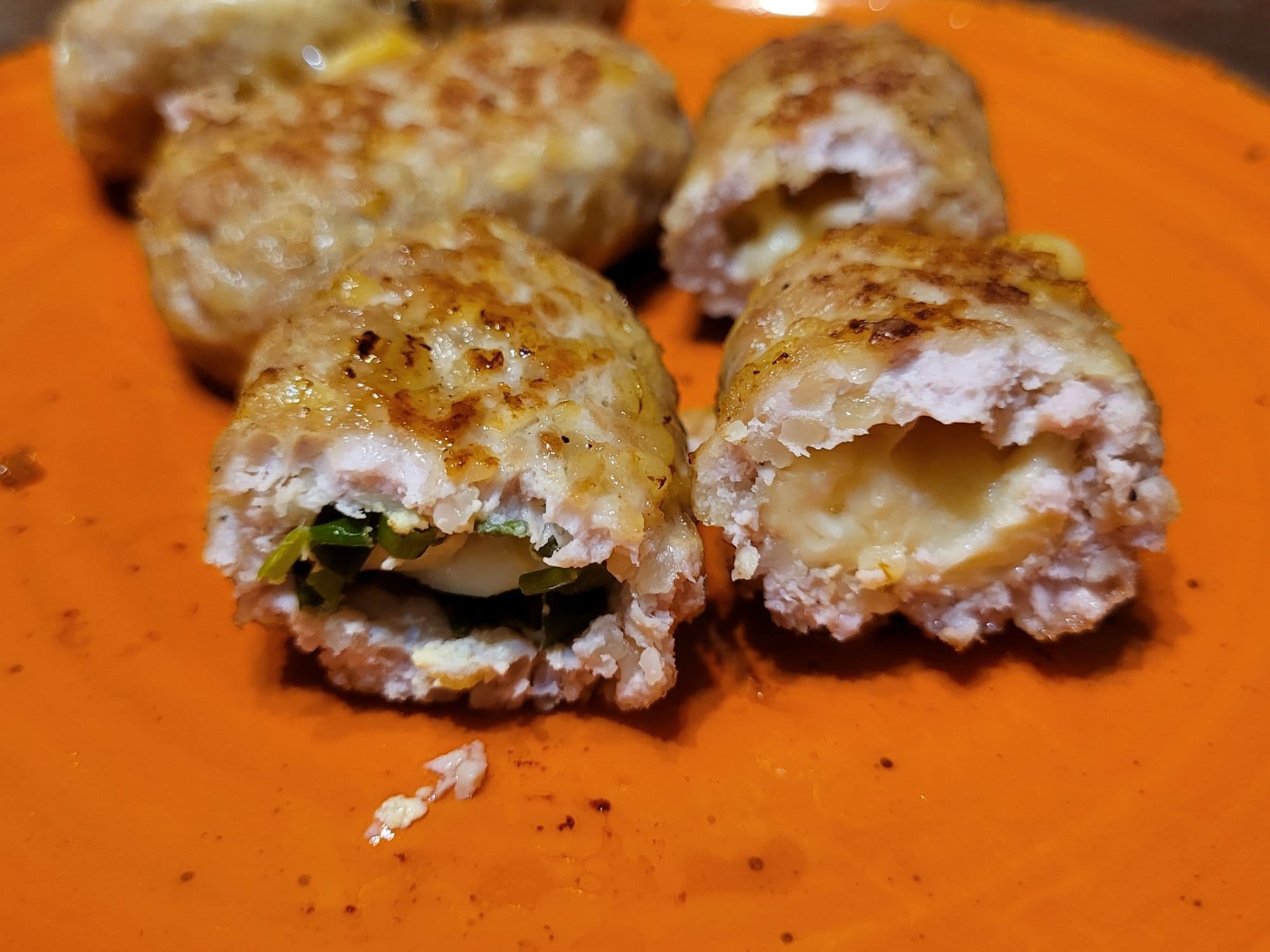 Но мы все же решили запихнуть сыр — и отдельно взятый сыр прекрасно входил в трубочку из фарша.