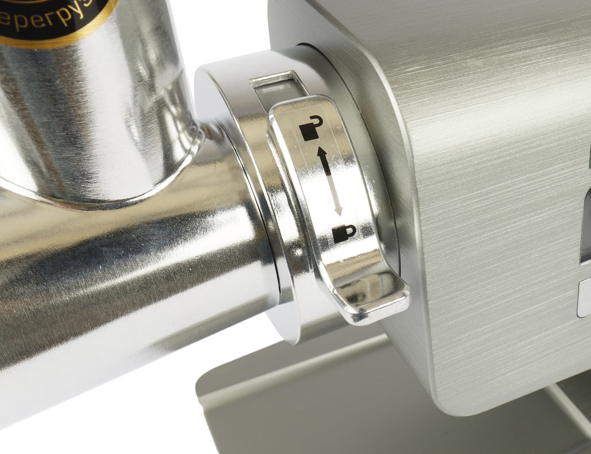 Стоит обратить внимание на то, что на картинке в инструкции рычаг фиксатора поднимается вверх, а на самом деле просто сдвигается вниз-вверх, блокируя и разблокируя блок мясорубки.