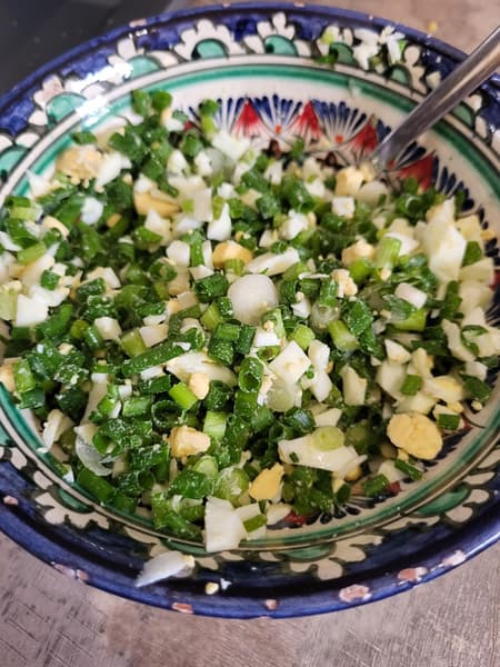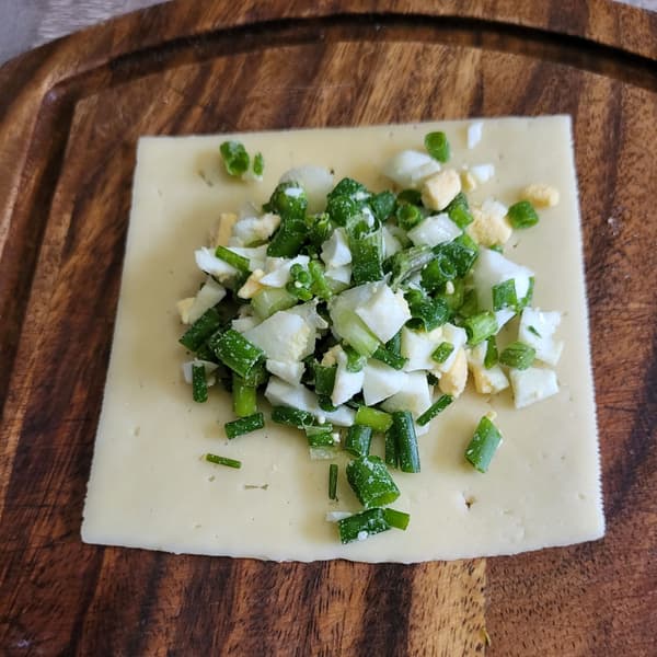 Начинка — яйцо с луком, завернутые в сыр — отказывались влезать в трубочку категорически. Может быть, у авторов рецепта была насадка с другим диаметром отверстия? Это осталось неизвестным для нас.