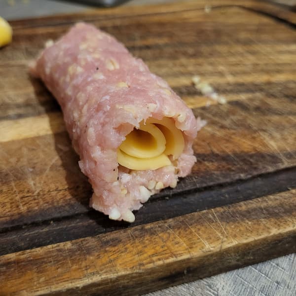 И завернуть в сыр, чтобы потом с легкостью (вот тут и начинается самое интересное) вставить в трубочку из фарша.