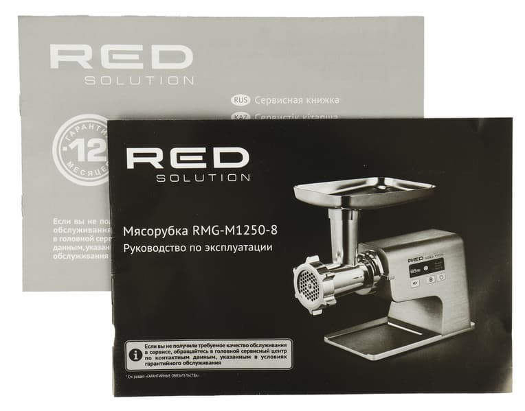 Руководство по эксплуатации Red RMG-M1250-8 — стандартная брошюра формата А5, напечатанная на тонкой глянцевой бумаге, на русском и казахском языках.