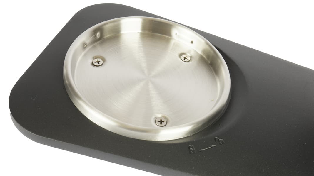 Круглая сенсорная панель управления, покрытая глянцевым черным пластиком, немного выступает из корпуса.