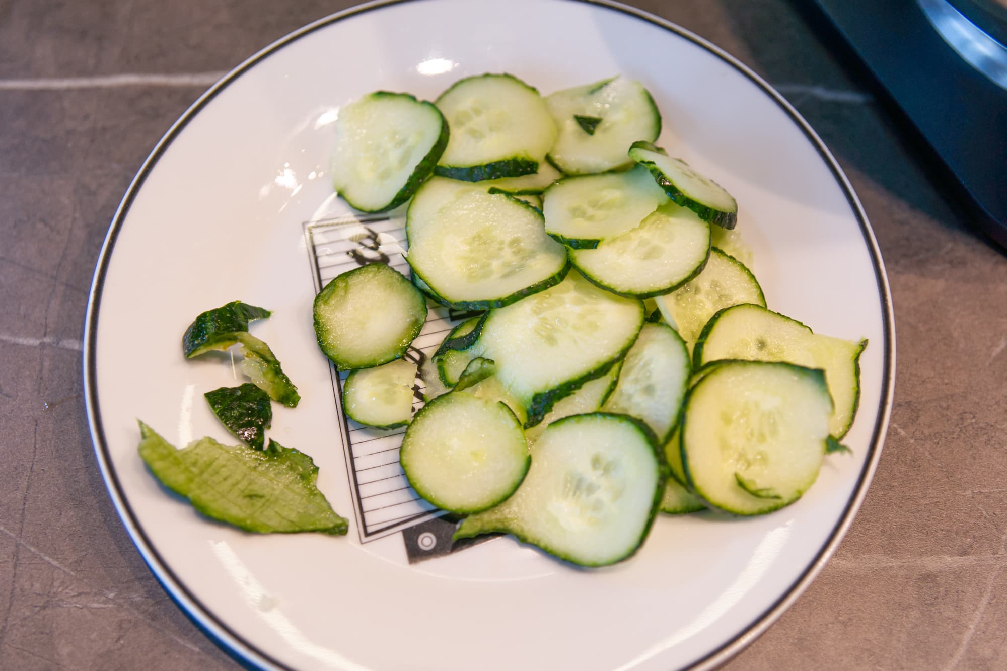 Огурец среднего размера был нашинкован тонкими пластинками всего за 10 секунд. прибор работал на 5-й скорости. Отходов минимум.