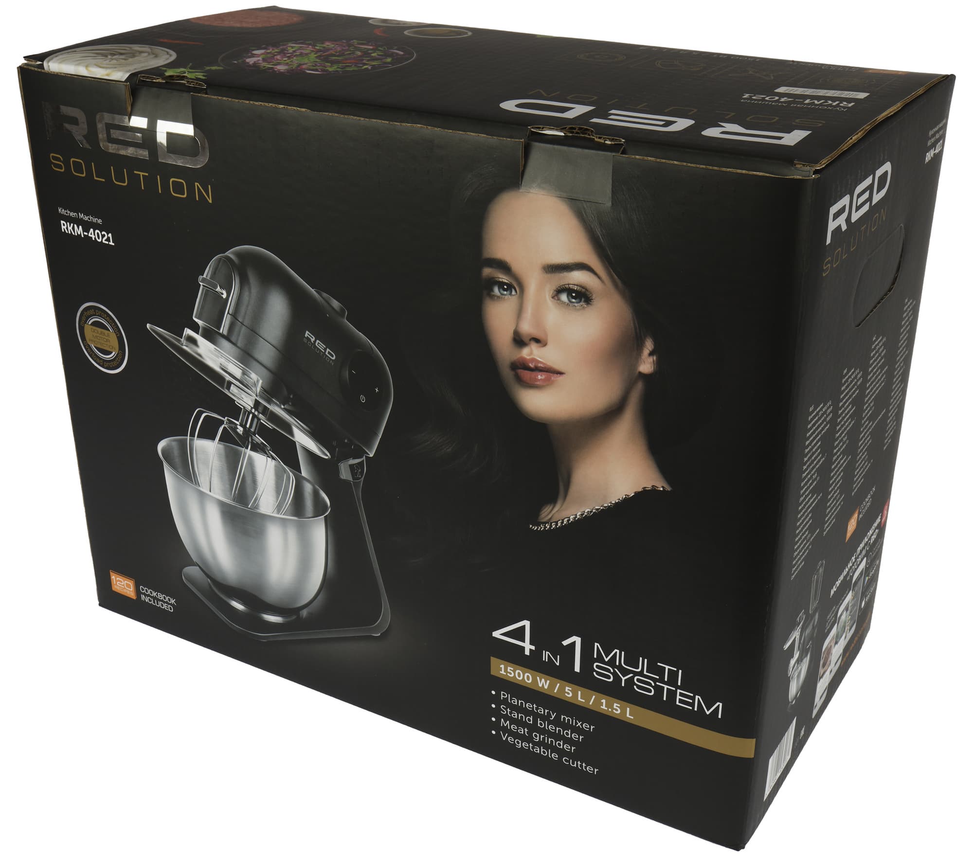 В арсенале кухонной машины Red Solution RKM-4021 есть всё самое необходимое и нет ничего лишнего: планетарный миксер, блендер, мясорубка и овощерезка.