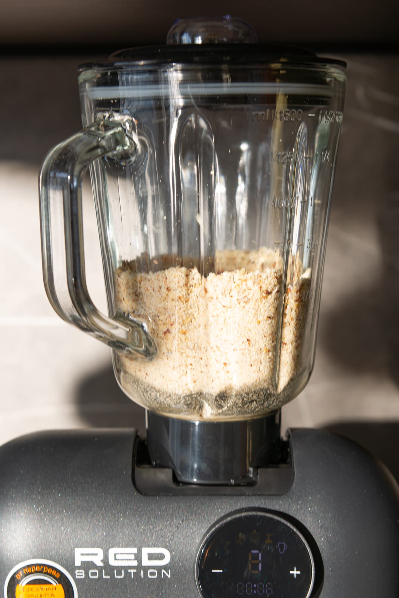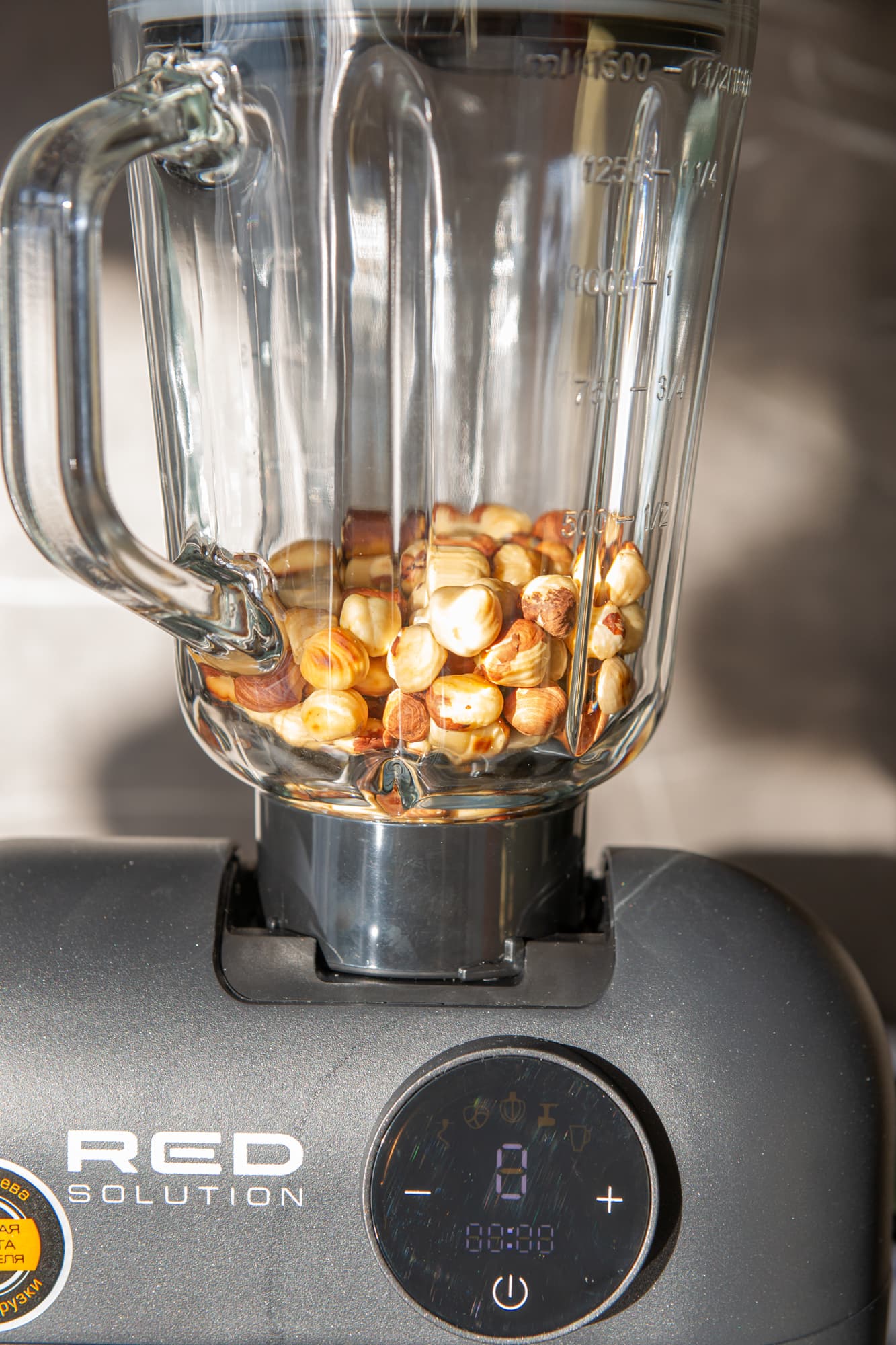 200 граммов предварительно обжаренного фундука измельчились за 25 секунд. Блендер, как и в предыдущих тестах, трудился на 7-й скорости. Ни одного кусочка ореха мы не отыскали — сплошная крошка.